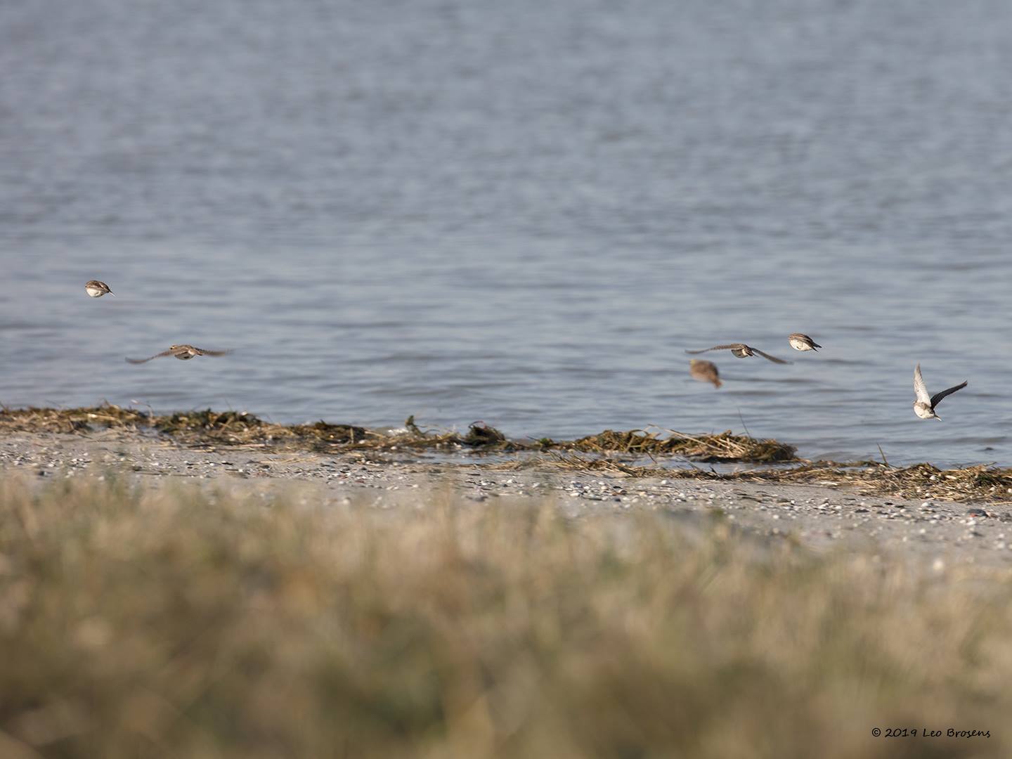 Ga je rond deze tijd in Zeeland op zoek naar vogels dan kun je wel eens een minder algemene soort tegen komen. Zo denk ik hier een kleine strandloper voor de lens te hebben. Echt klein zijn die. Ze goed herkennen valt toch nog niet mee. Het zijn lange afstandstrekkers die hun broedgebied in de poolstreken direct na de broedtijd verlaten. De ouders dan wel te verstaan want de nieuwe kinderen volgen later. Aan de echte winter ontsnappen ze omdat ze door vliegen naar Afrika ten zuiden van de Sahara, tot in Zuid-Afrika toe. Wat een vliegprestatie weer van deze trekker en dat met heel weinig stikstof uitstoot, zeg maar volledig duurzaam.