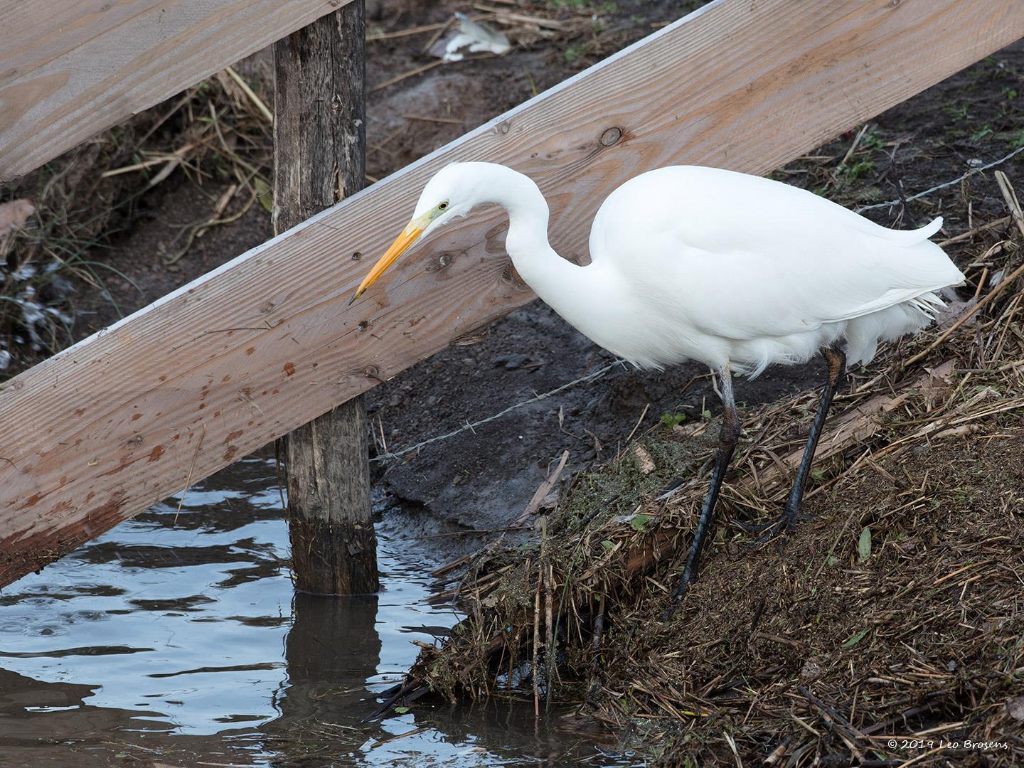 Heeft de blauwe reiger best veel kleur, deze neef helemaal niet. Alleen de snavel is geel en de poten zwart, de rest hagelwit. Knap dat deze vogels zo schoon wit blijven. Ze zijn met een opmars in Nederland bezig. Ze komen in het najaar in groten getale vanuit midden- en oost-Europa naar ons toe om te overwinteren, maar er zijn er ook die hier hun eieren uitbroeden en hun jongen grootbrengen. Het eerste broedgeval dateert uit 1978 in de Oostvaardersplassen, inmiddels broeden er meer dan 200 paar verspreid over het land.