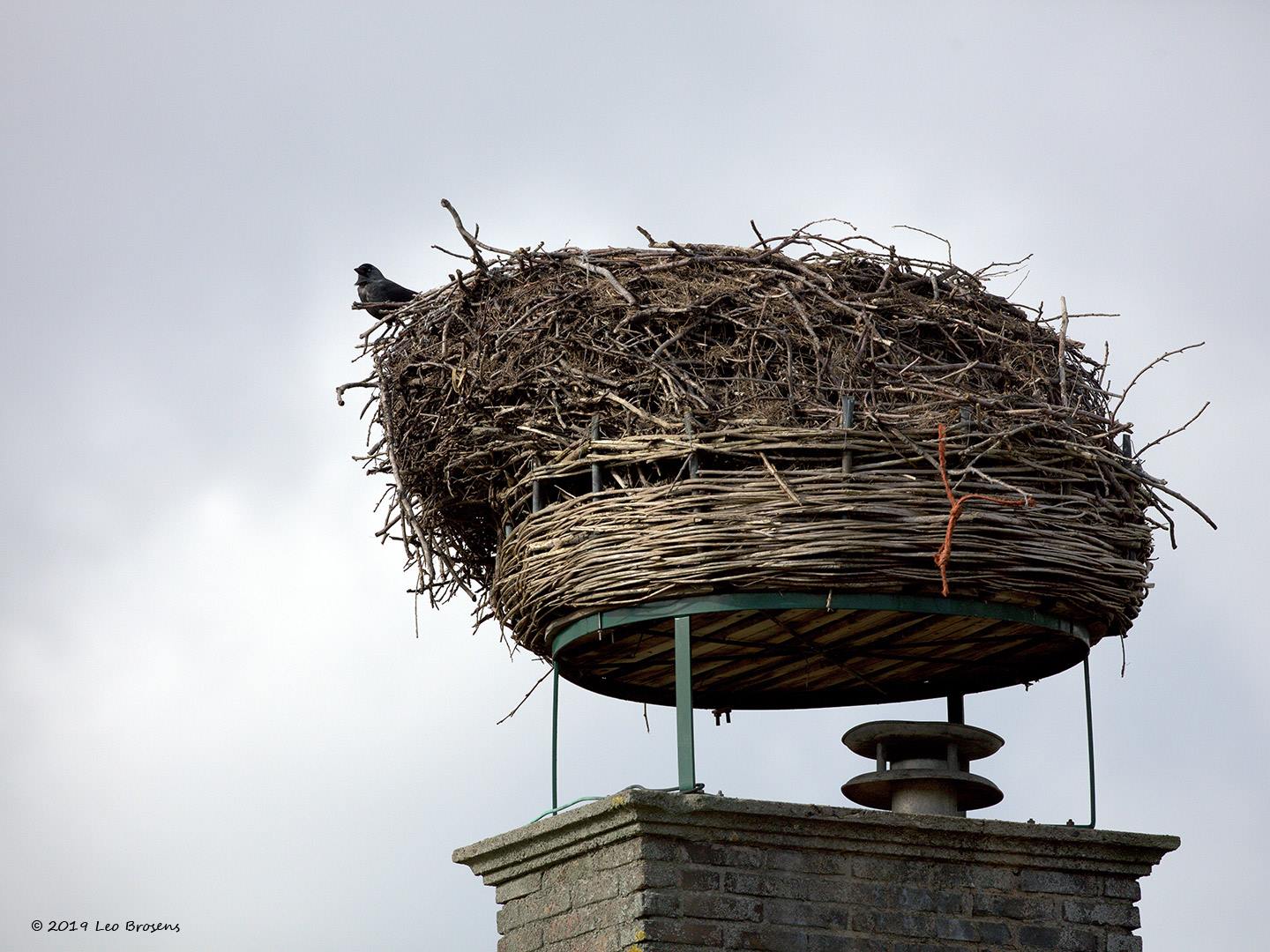 De vorige foto was een uitsnede van deze, laat zien dat er best wat detail in zo'n foto zit. Het ooievaarsnest bij Bouvigne. Wat een nest bouwen die ooievaars. Ze zijn al terug maar toen ik ging kijken was alleen deze kauw even op bezoek op het nest. Een volgende foto is hopelijk wel met ooievaars erop.