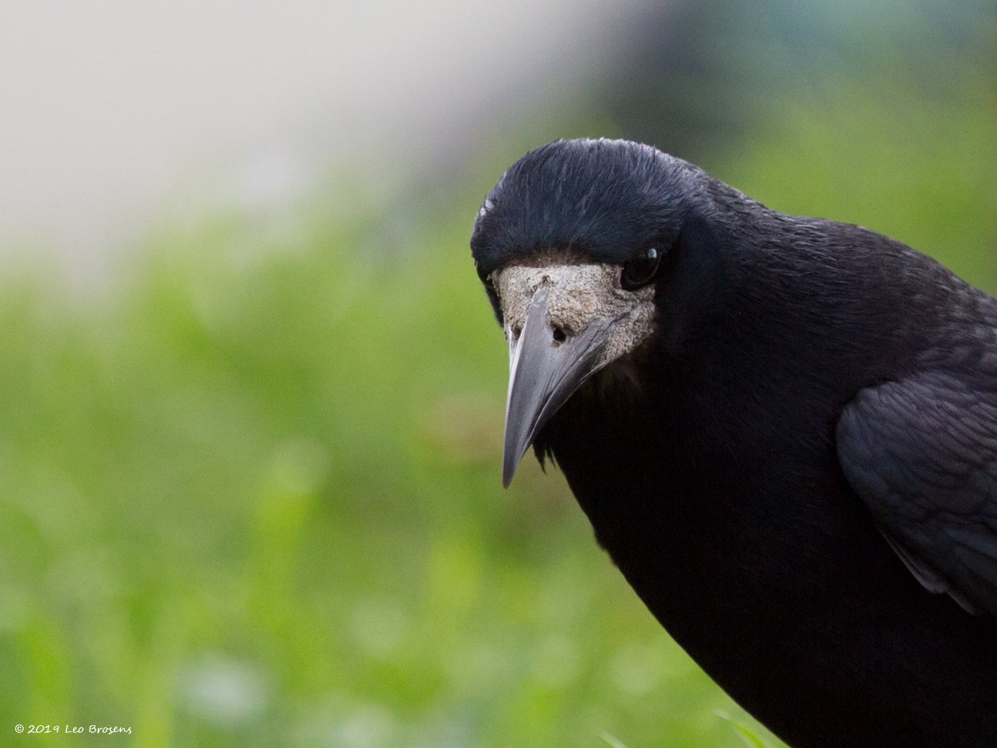 Die rare snavelbasis van de roek is hier goed in beeld. Vaak hebben speciale kenmerken van een dier een speciale functie. Waarom de roek deze ongewone snavelbasis heeft is mij niet bekend. De ruwe huid is van oog tot snavel onbevederd. Ik kan er niet een twee een voordeel van inzien. Met de eetgewoontes heeft het niet te maken dacht ik? Roeken zijn net als andere kraaiensoorten flexibele eters. Ze prefereren dierlijk voedsel: regenwormen, slakken, insecten en af en toe muizen. Plantaardig voedsel maakt ongeveer 60% van hun dieet uit. De plantaardige voeding bestaat vooral uit allerlei zaden. Ook worden wel noten, eikels en vruchten als kersen en pruimen gegeten. Juveniels worden voornamelijk met wormen en insecten gevoerd. Wat me ook opvalt bij de snavel is dat ie best slank gebouwd is, bij de kraai is die grover.