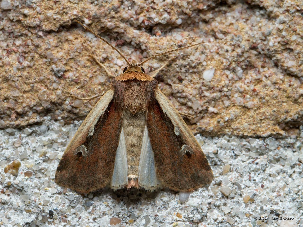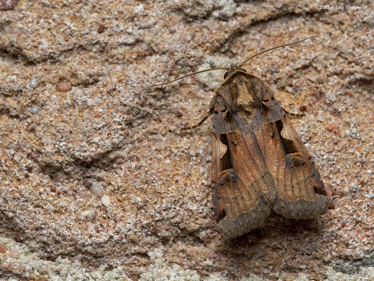 Een leuke naam toch heeft deze nachtvlinder uit de familie van de Noctuidae/Uilen. Je kunt hem tegen komen van begin april tot begin oktober. In die tijd zijn dan tweemaal en soms driemaal rupsen tot een vlinder omgevormd. De rups eet 's nachts en overwintert als pop net onder het grondoppervlak. Ze lusten allerlei kruidachtige planten die ze vinden in tuinen, graslanden, akkers, struwelen, heiden, bossen en moerasachtige plaatsen.