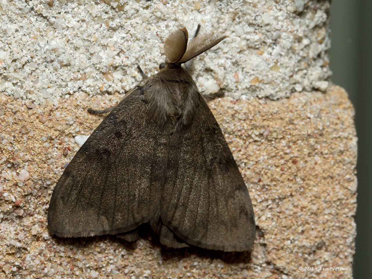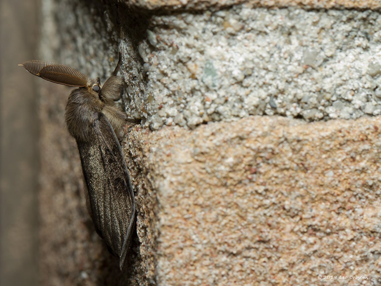 Nachtvlinders durven alleen in het donker te vliegen. Overdag is de kans groter dat ze als hapje worden gevangen. En daglicht hebben ze toch niet nodig voor hun opdracht. Die opdracht is een partner vinden en voor nageslacht zorgen. Hier zien we een mannetje dat op zoek is naar een vrouwtje. Die vrouwtjes zenden lokstoffen uit die de mannetjes met antennes opvangen. De plakker heeft enorme antennes voor dit doel. Met zulke feromoonzeven moeten de dames wel gevonden kunnen worden lijkt me. Maar goed ook dat meneer dit gereedschap heeft want mevrouw van deze spinneruilensoort vliegt zelf namelijk niet, blijft dus steeds op een plek rond kruipen.