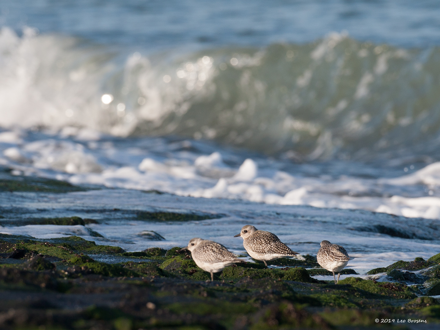 Als je nu naar de Noordzeekust zou gaan dan kun je daar vanwege de najaarstrek van alles tegen komen. Zo zaten deze drie zilverplevieren op de dijk bij Westkapelle. De zee liet best wat golven zien. Bij wind van zee richting land heb je de meeste kans op mooie waarnemingen.