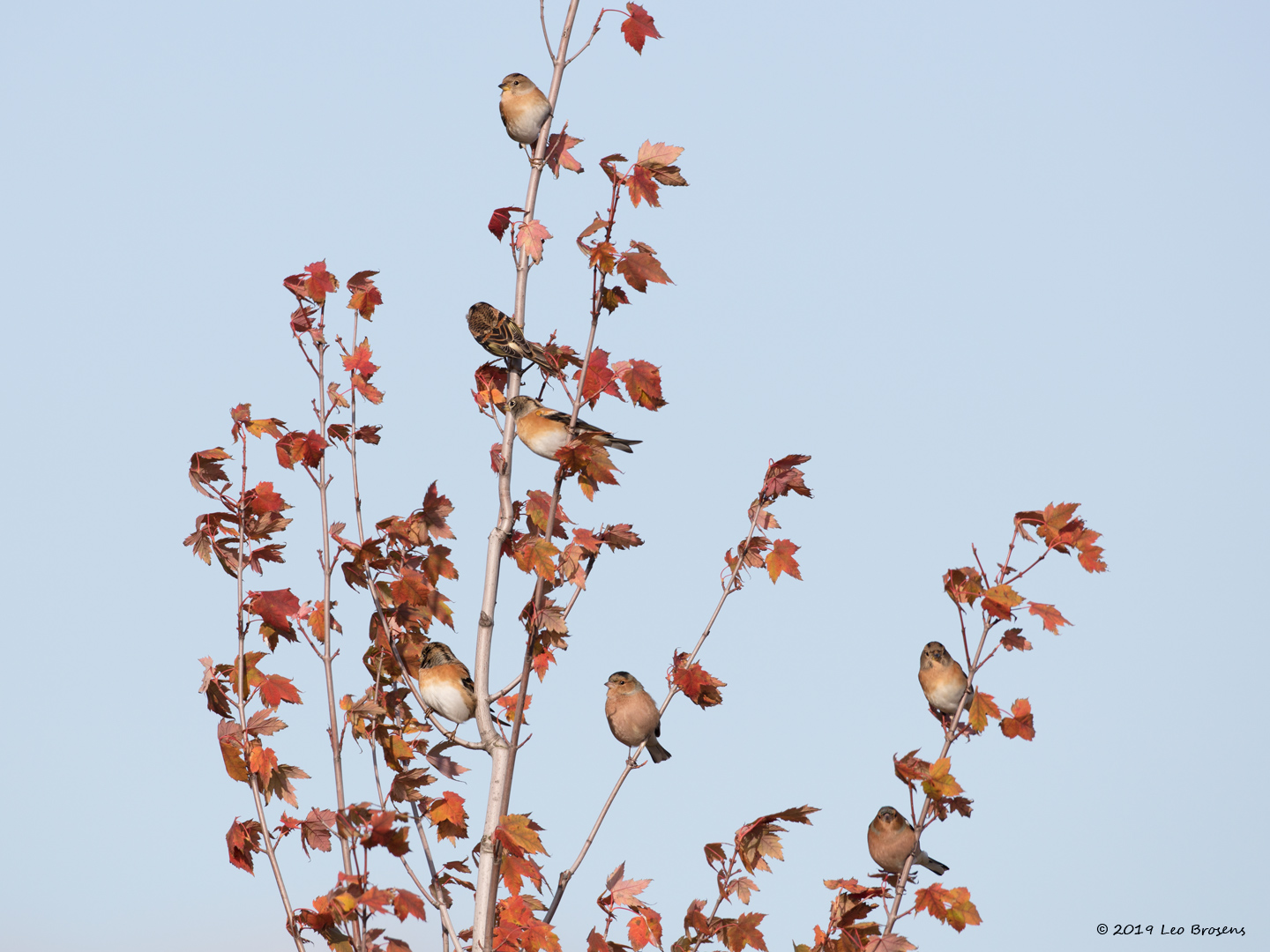 Een boomteler dicht bij de pakhuizen van grensovergang Hazeldonk heeft dit jaar een stukje akker ingezaaid met naar ik meen groenbemesting. Met allerlei planten c.q. kruiden. Prompt zijn daar groepjes vinken te zien. Ze vliegen eerst wat rond en duiken dan in die dichte lage begroeiing om zaden te zoeken. Zo in dat lage groen zijn ze niet meer te zien. Op onverwachte momenten vliegen ze weer op om ergens wat uit te buiken om of door te vliegen. Echte familievogels zijn die vinken, ze zoeken elkaar in de winter op, is lekker veilig en zeker zo gezellig dan alleen op stap. Erg waardevol zijn dit soort stukjes begroeiing, waren er daar maar meer van. Ik zag hier nu vooral kepen. Met enkele gewone vinken er tussen en af en toe een enkele groenling. Sovon spreekt van naar schatting tot 200.000 kepen in doortrek bij ons jaarlijks.