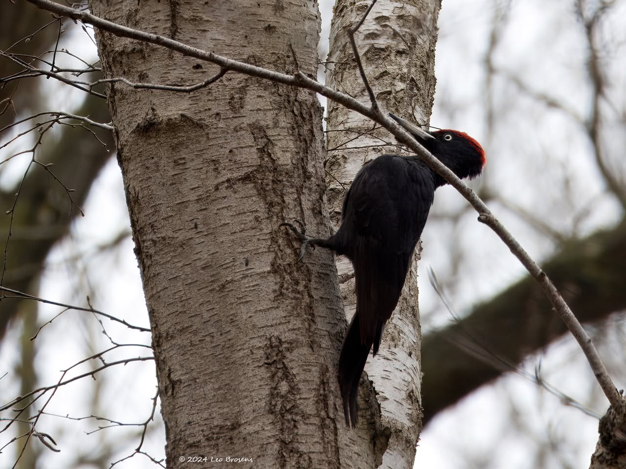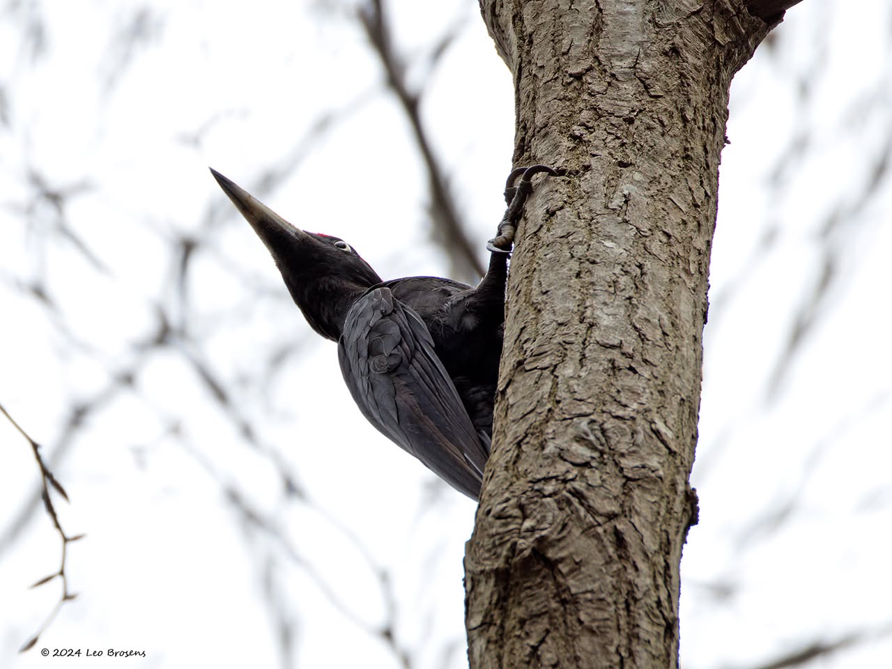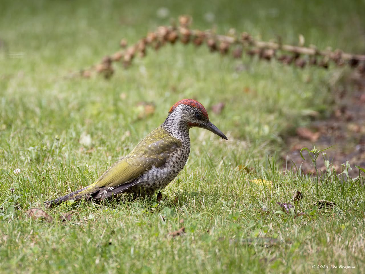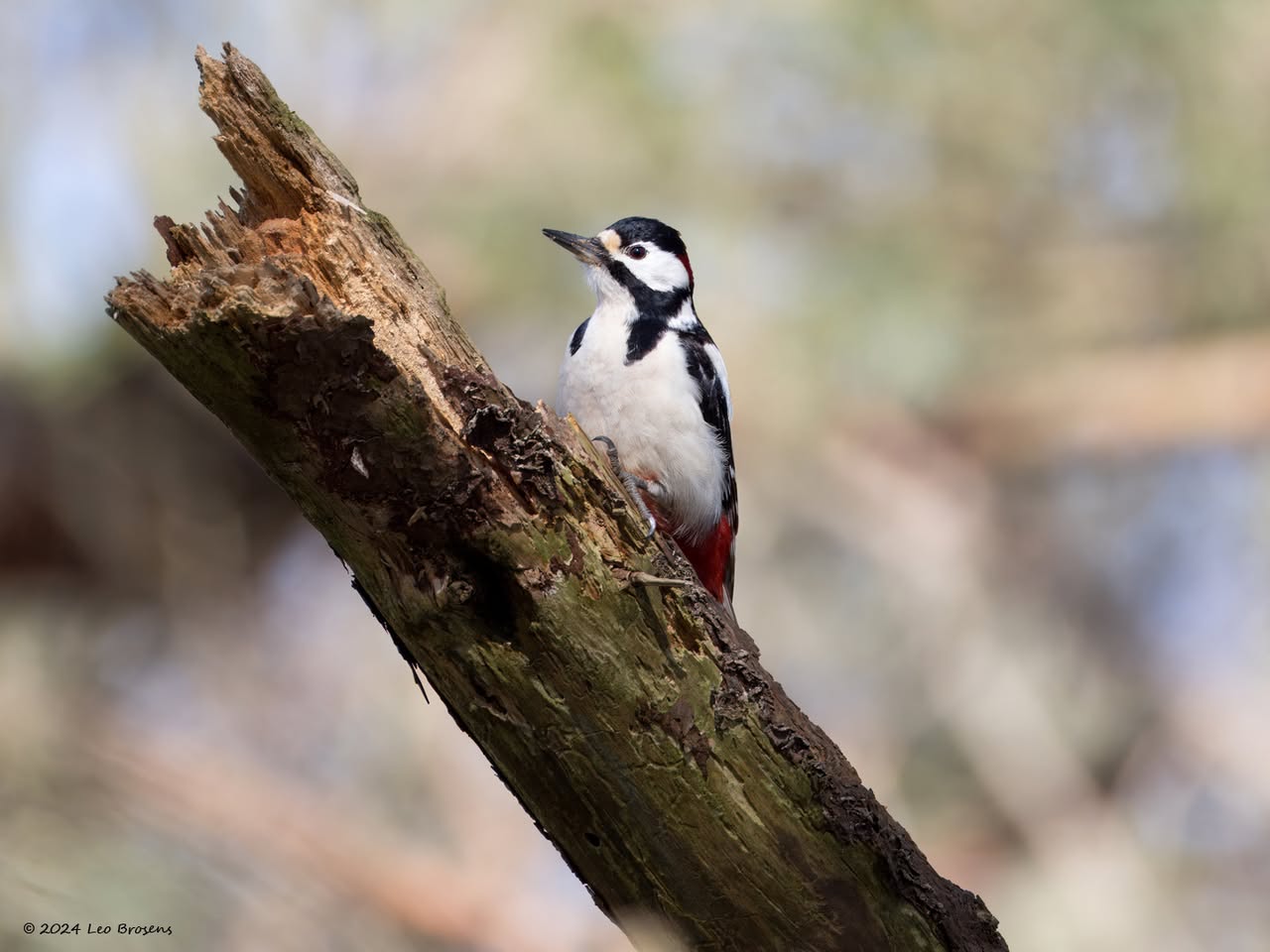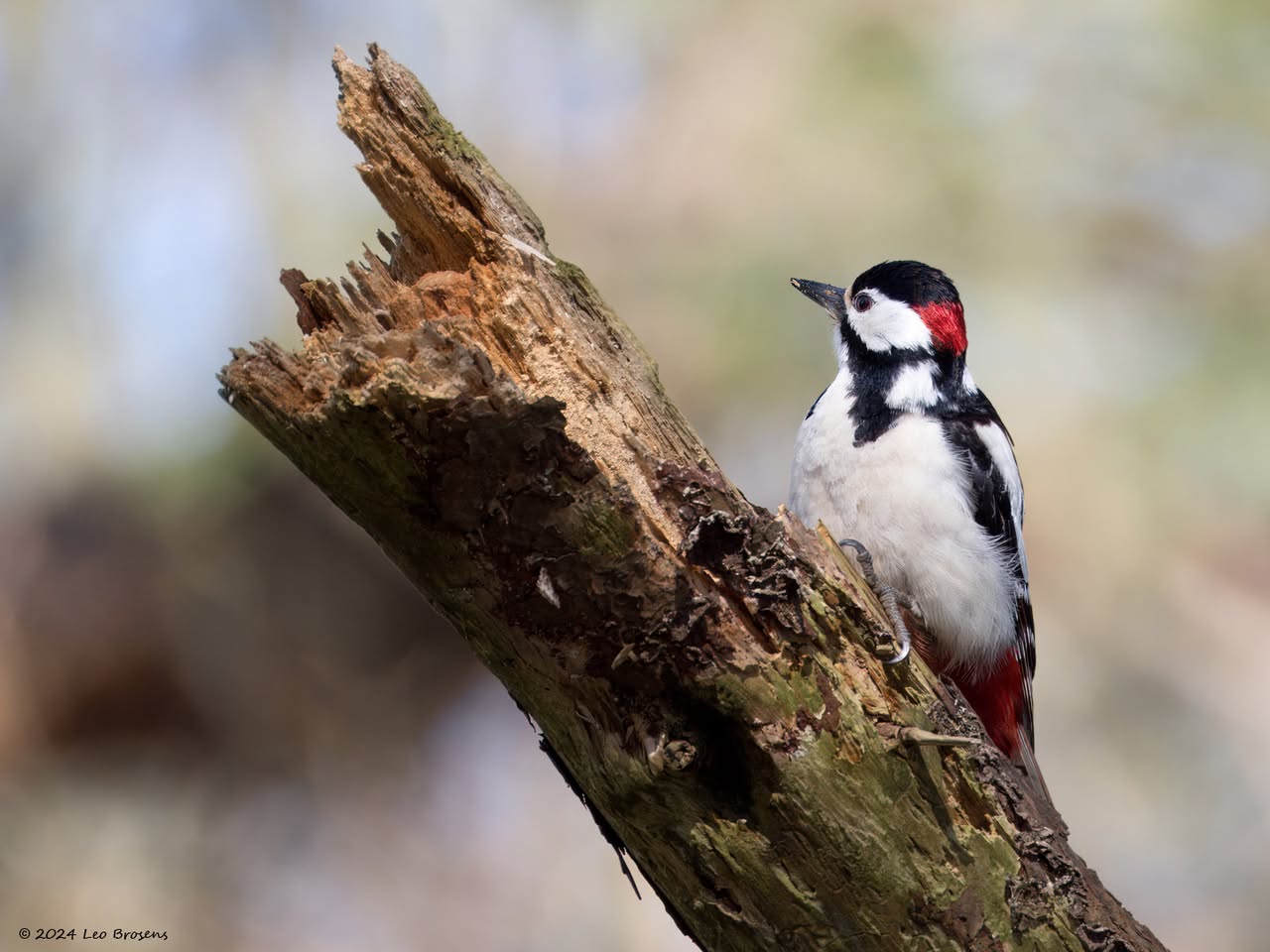 Precies een week geleden scheen de zon rond de middag, echt waar. Toen spotte ik deze kleine specht hoog in een boom in de Waaienberg. Klein betekent hier een lichaamslengte van 14 tot 16 cm, de vleugels geheel gespreid meet een spanwijdte van 25 tot 27 cm. De soort is duidelijk seksueel dimorf wat betreft de koptekening. Alleen het mannetje heeft een rode kruin, aan de zijkanten gebiesd met een zwarte streep. Het vrouwtje heeft een geheel zwarte kruin en is dus geheel zwart-wit gekleurd. De rugtekening is ook kenmerkend. Let op het steunstaartje.