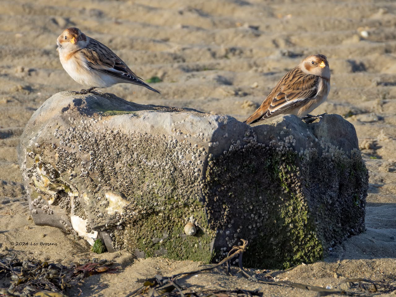 Vanmorgen zag ik een groepje sneeuwgorzen op de Oesterdam. Het was nog geen hoog water en daarom zag ik ze eerst ver het wad op, te ver voor een goede foto. Gelukkig kwam ik iets verderop een klein groepje tegen aan de kant, op de stenen van de dam. Ze waren erg actief en moeilijk te fotograferen, mede door de lastige verlichting. Pure wintergasten zijn het, de maanden november, december, januari zijn de beste maanden om ze tegen te komen. Dat gaat niet elk jaar even gemakkelijk omdat hun aantallen per jaar erg verschillend kunnen zijn.