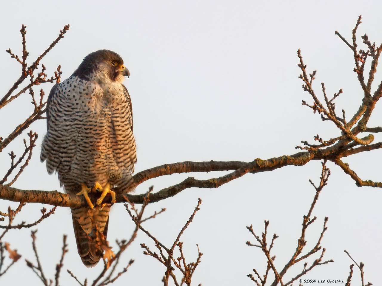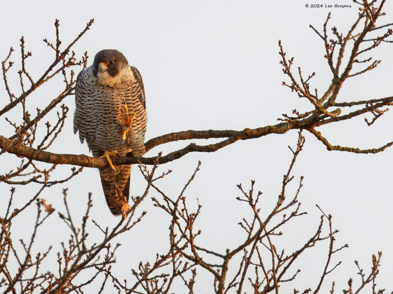 Terug in de tijd, om precies te zijn naar maart 2011, tegen de avondschemer bij de Bleeke Heide. Ik ben niet zeker of toen al in Alphen op de kerktoren de slechtvalk broedde? De rover was toen vaak te zien in de grote bomen rondom de waterplas van de Bleeke Heide, een prima plek voor veel vogels dat dicht bij Alphen gelegen is. Zou het een bewoner van de kerk in Alphen geweest zijn?