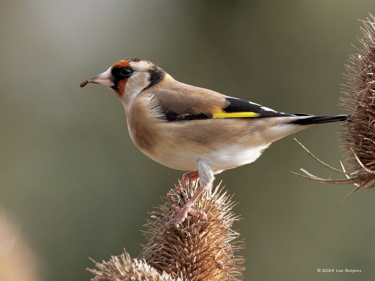 Ko heeft deze kaardenbollen al eerder gemeld. Ook ik trof er putters aan. Een groepje van een stuk of twintig denk ik. In de winter zoeken deze mooie vinken elkaar op om samen eten te zoeken. Met meerdere zijn ze veiliger dan alleen, er is dan altijd wel eentje die een gevaar opmerkt en dan op de wieken gaat waarna direct de rest volgt. Fijn dat er veldjes met deze zaadplanten worden gezaaid her en der. Dit soort vogels hebben er echt baat bij.
