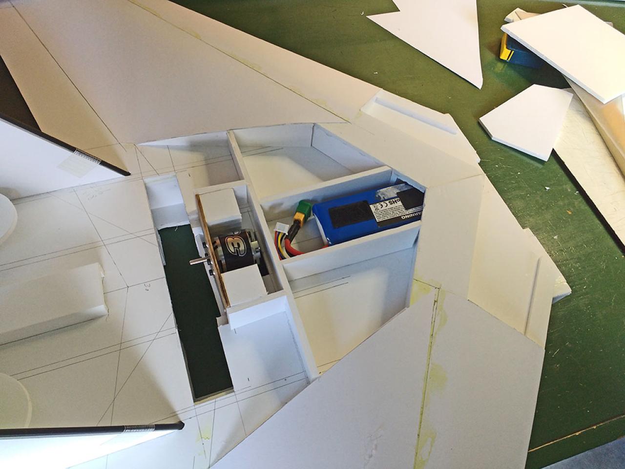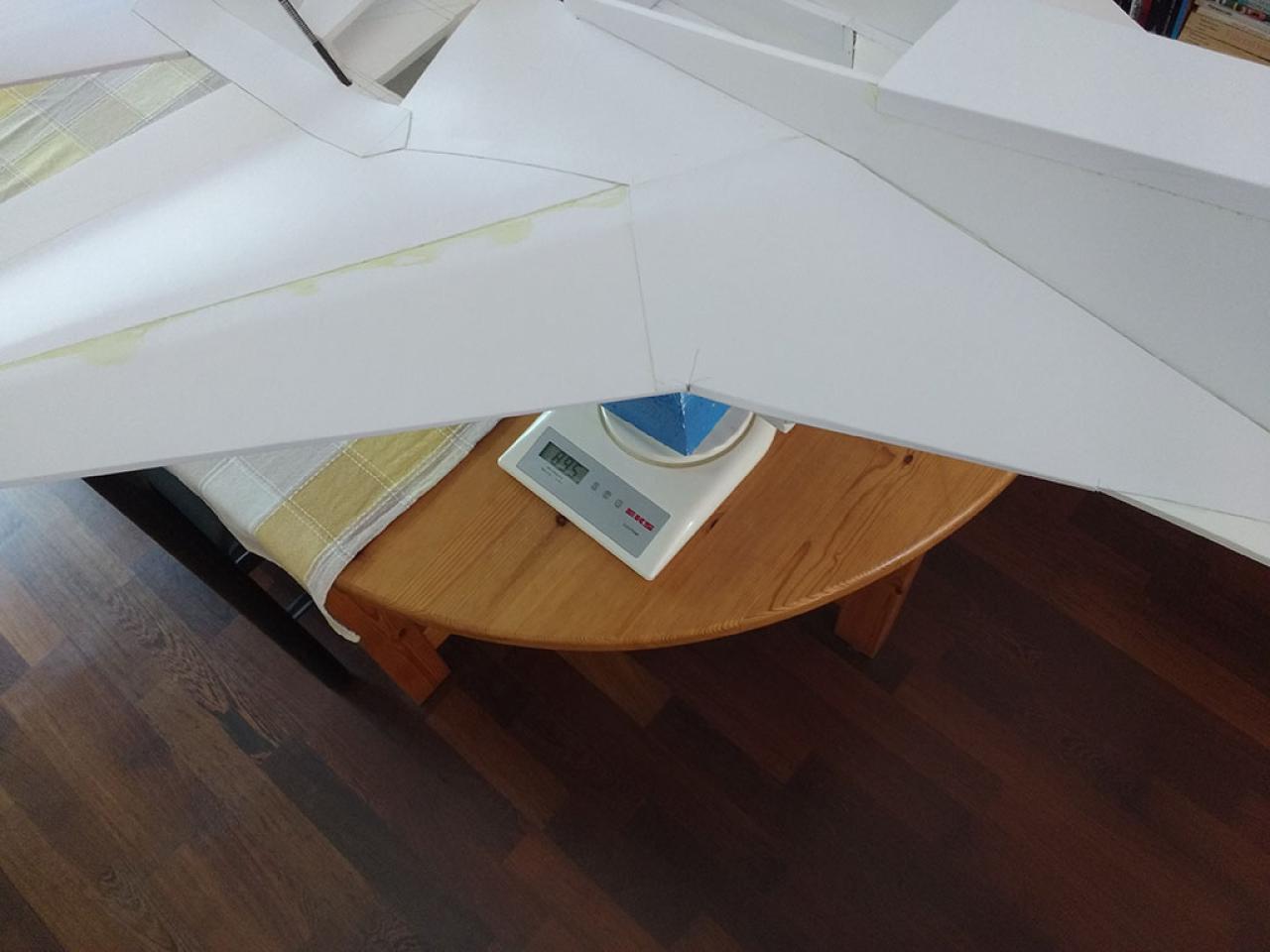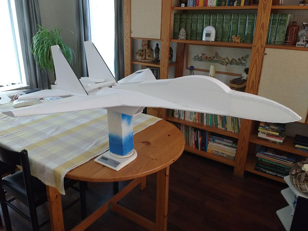 Doelstelling hier was te proberen een zo licht mogelijk model te maken met relatief veel lift waardoor opgooien goed mogelijk zou worden.