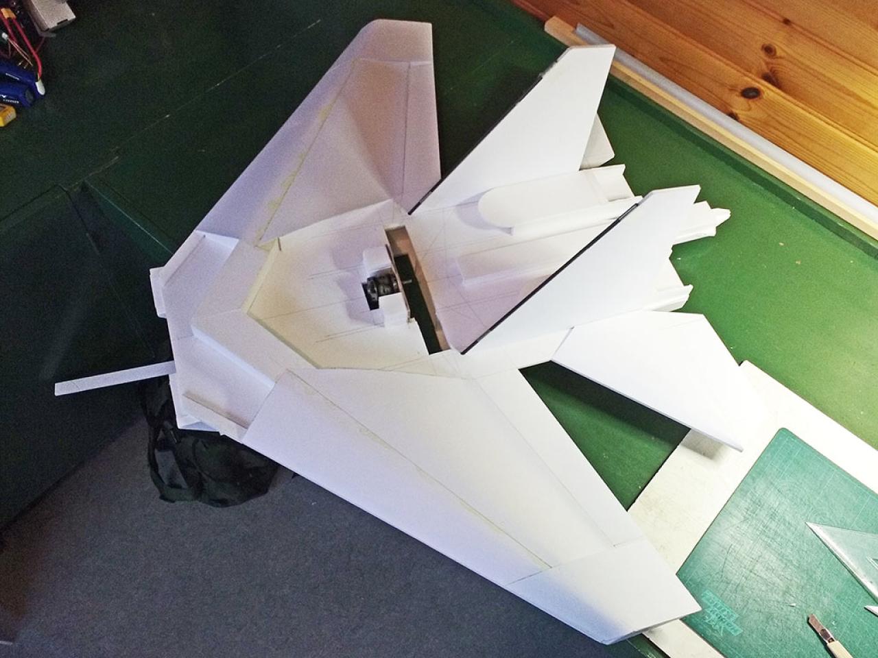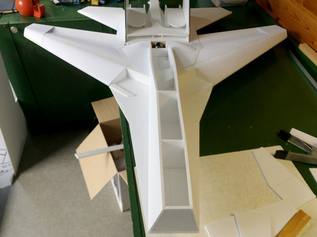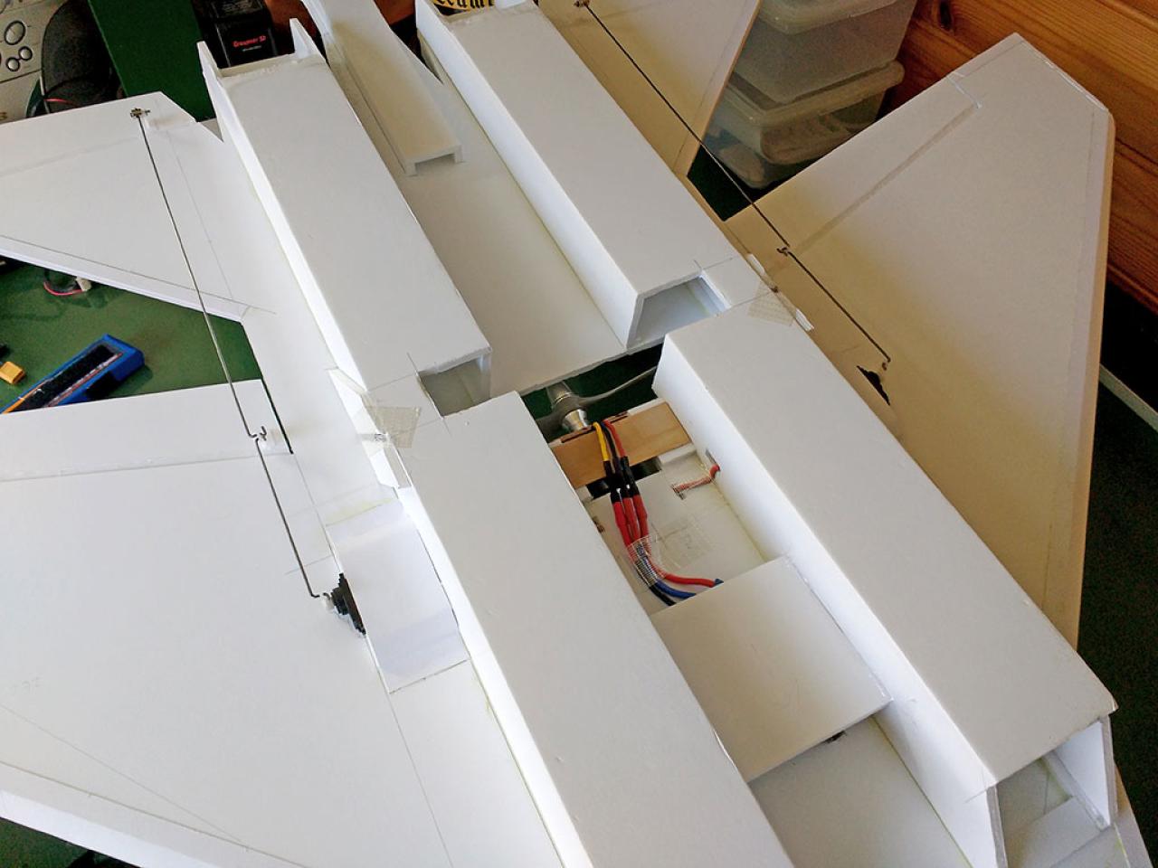 Doelstelling hier was te proberen een zo licht mogelijk model te maken met relatief veel lift waardoor opgooien goed mogelijk zou worden.