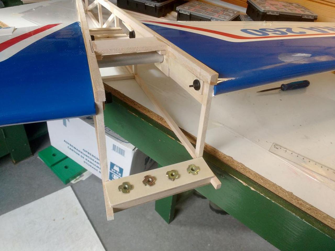 De constructie met als basis een driehoek tussen vleugelbuis, wielsteun en motorsteun voldoet eigenlijk best wel goed.