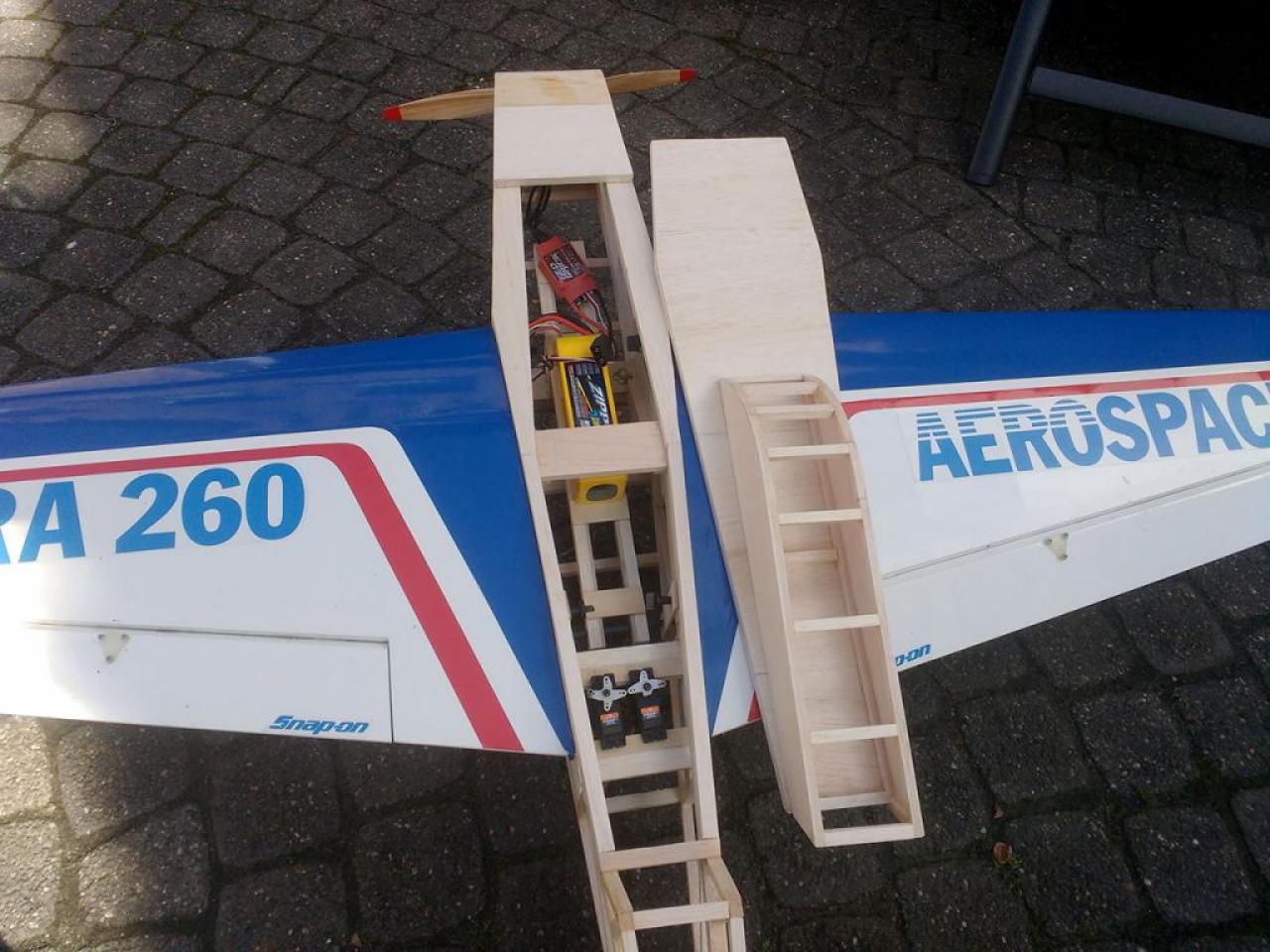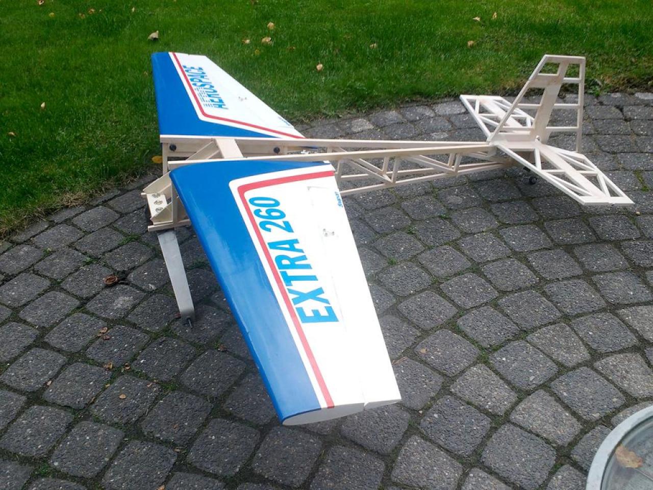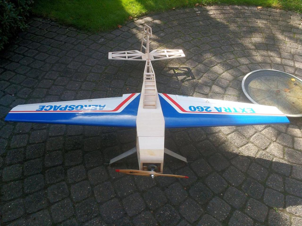 Marc Marien vroeg me herhaaldelijk om voor vleugels die hij nog had liggen een romp te maken, van een Extra 260, spanwijdte 160 cm.