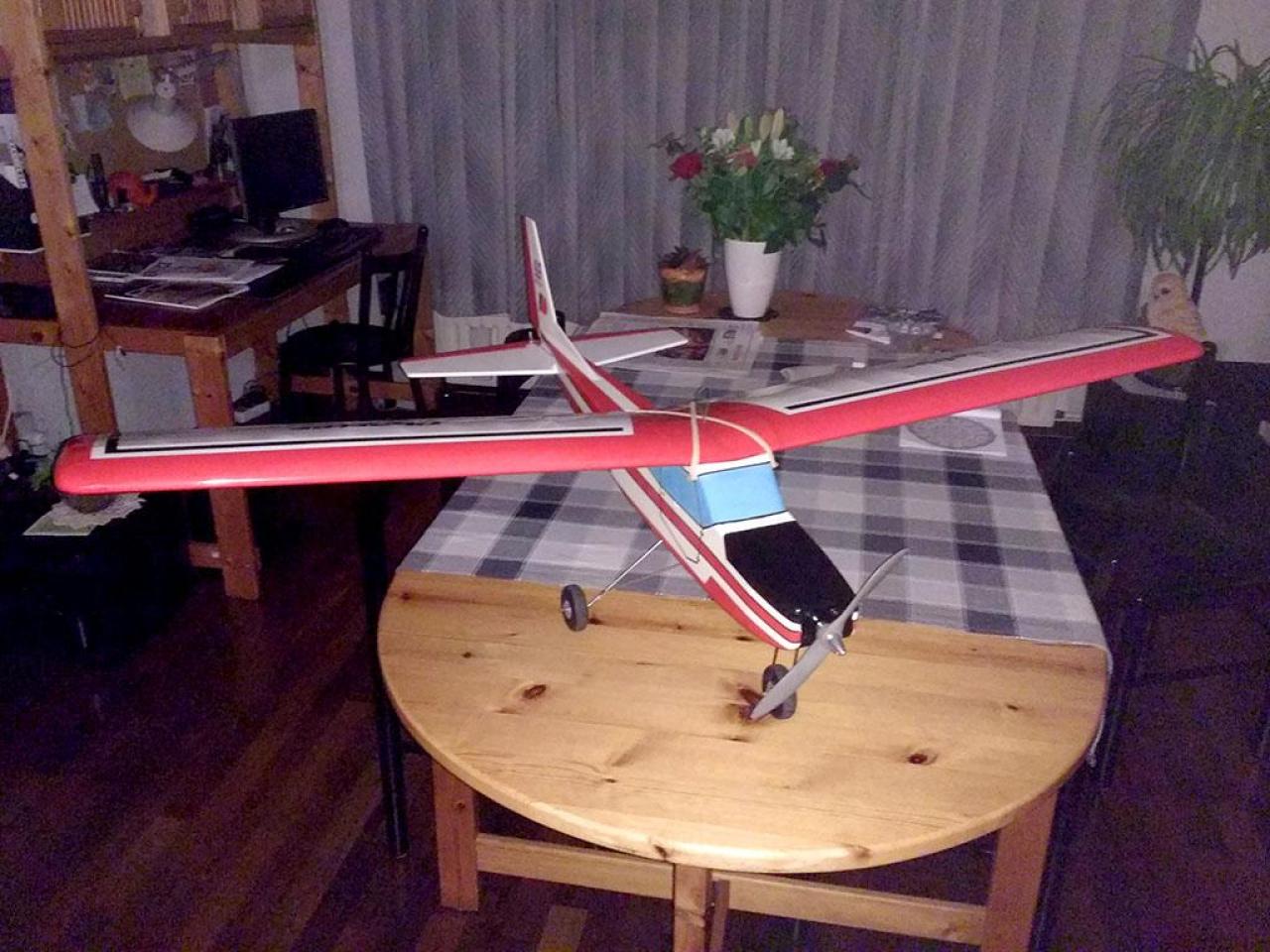 Gebouwd meer dan 30 jaar geleden, na een aantal vluchten met een 6 cc tweetakt en na meer dan 30 jaar op de schap bewaard te hebben, heb ik dit toestel weer eens opgepakt om er een elektrische aandrijving in te bouwen.