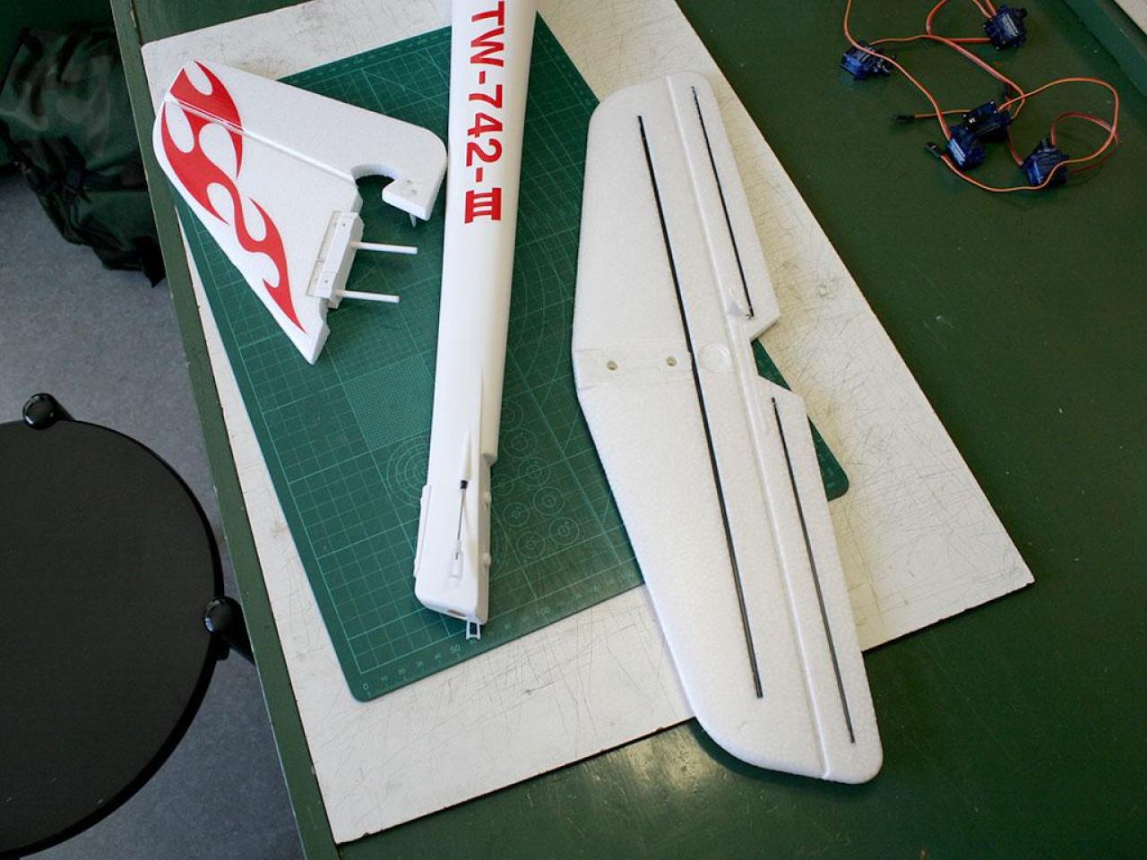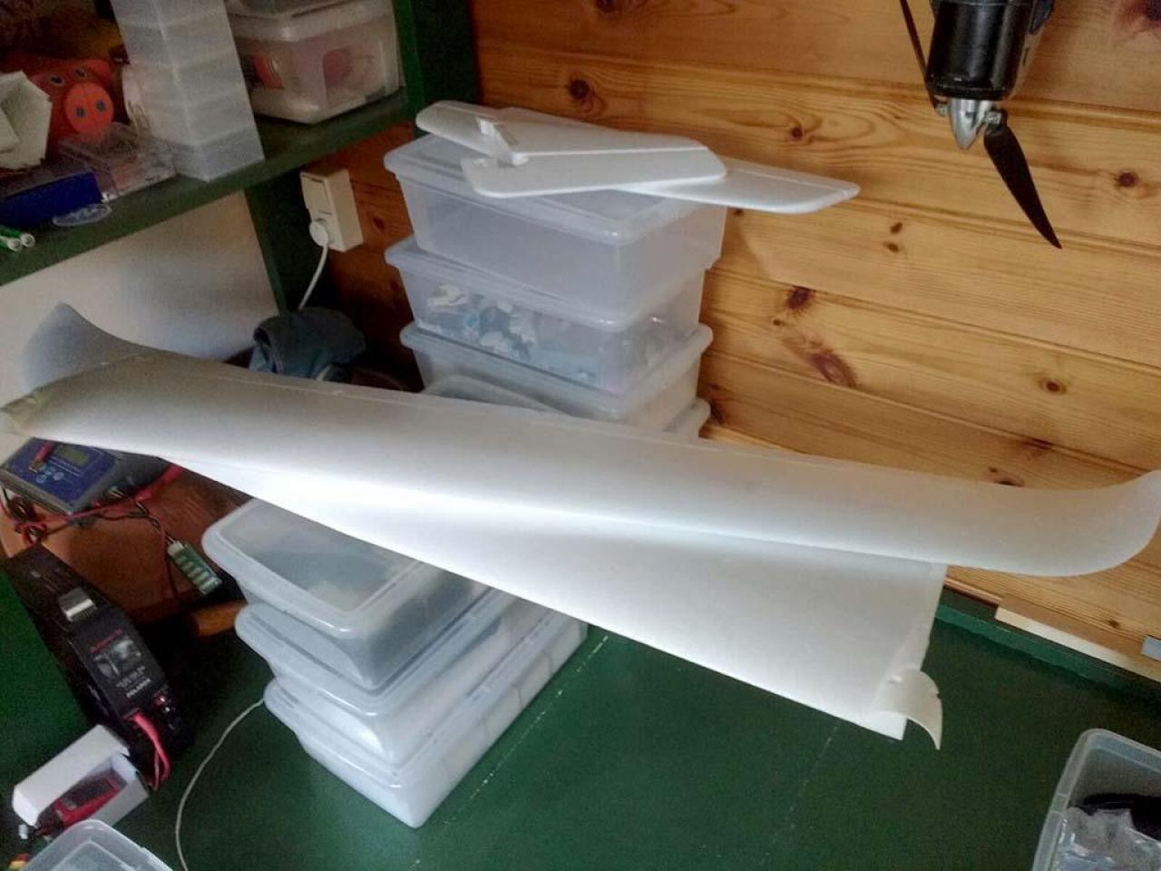 Naast de bouwdoos moest nog worden aangeschaft: motor ESC servo's De handleiding is slecht. Je moet goed opletten eer je begint. De passing etc. is allemaal goed in orde. Ik heb de glider meteen uitgerust met flaps.