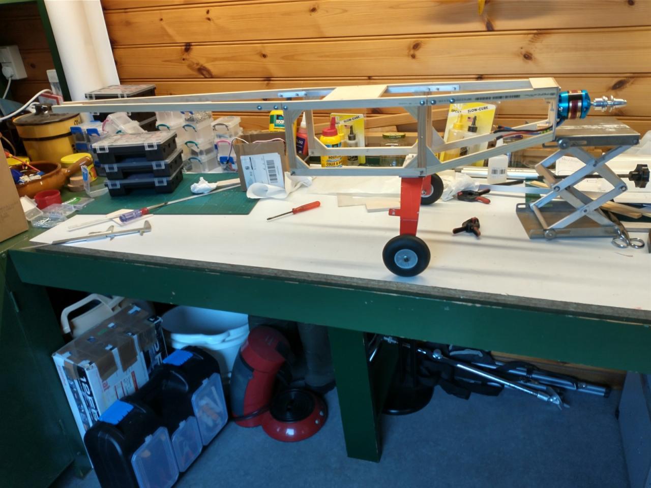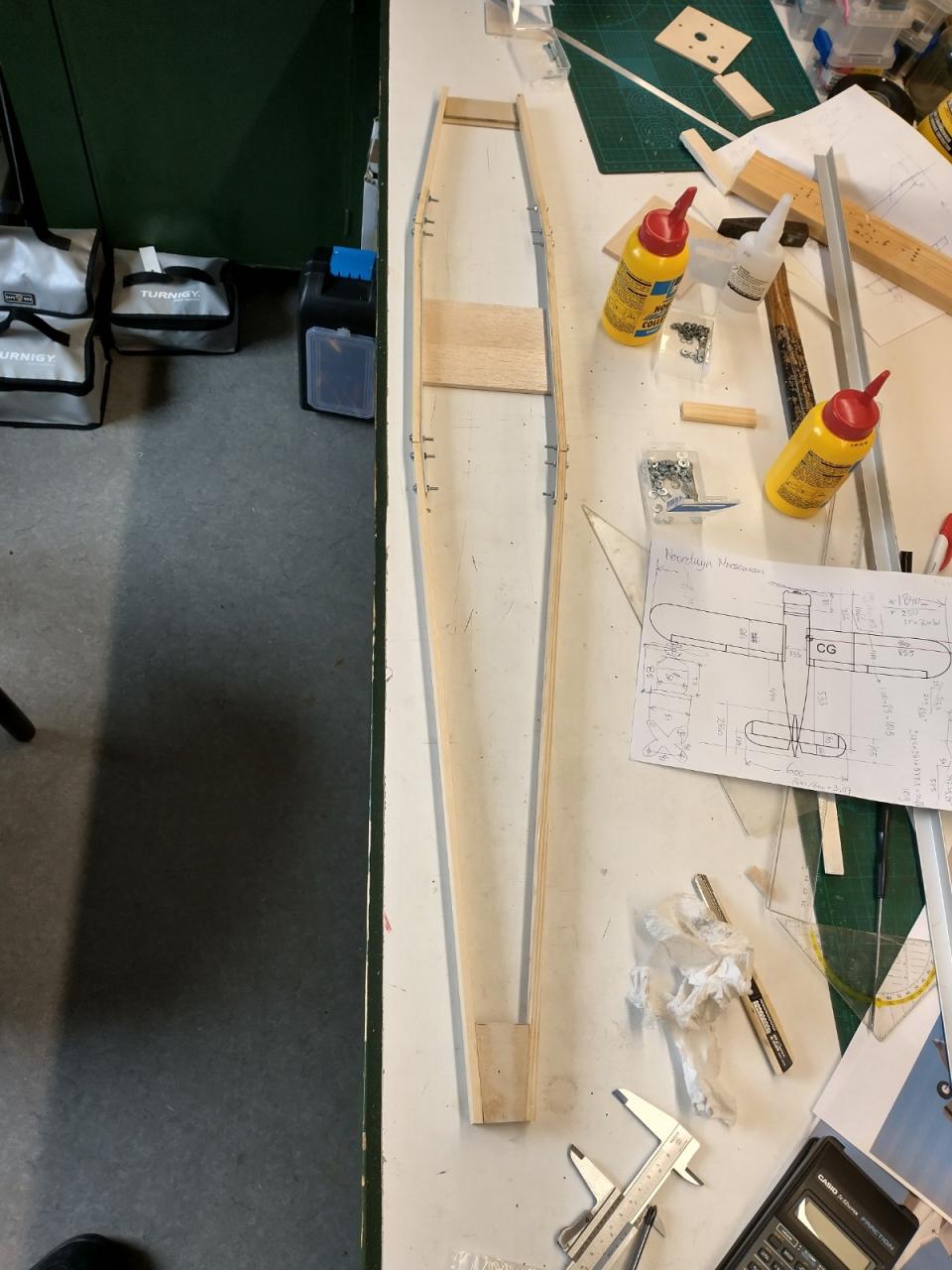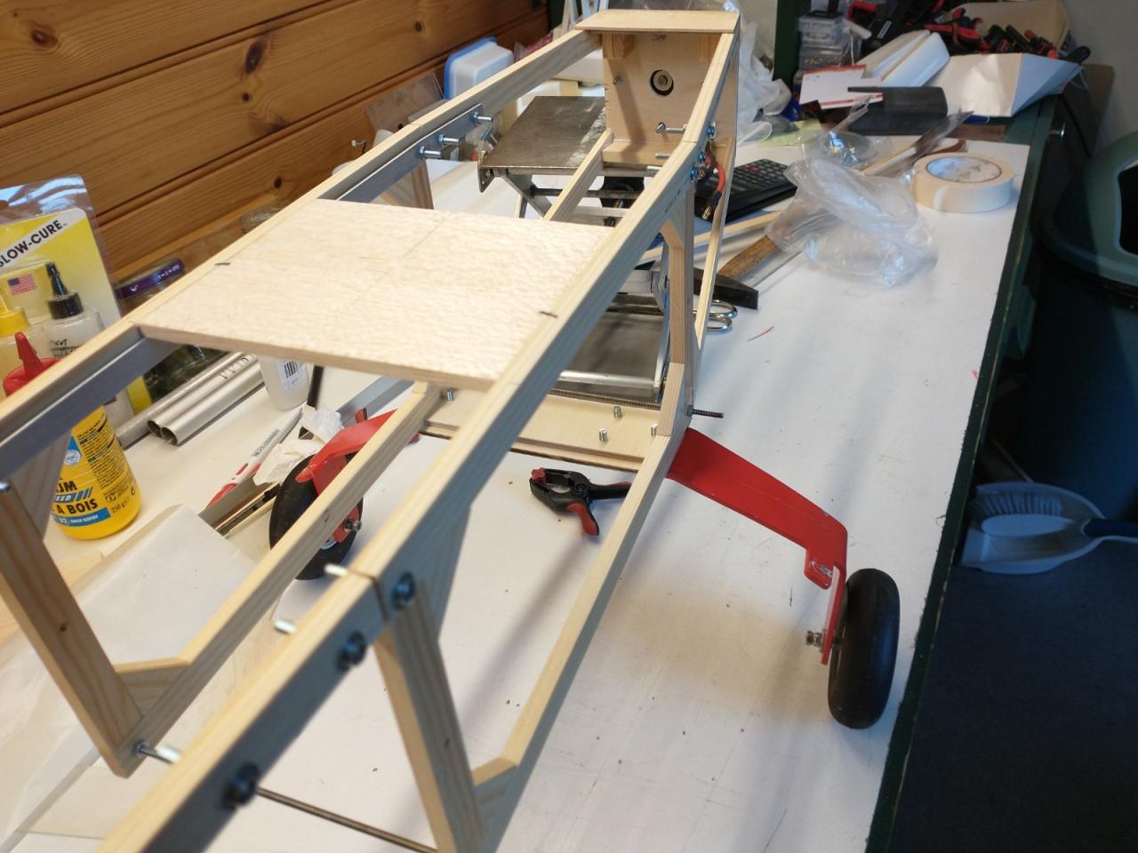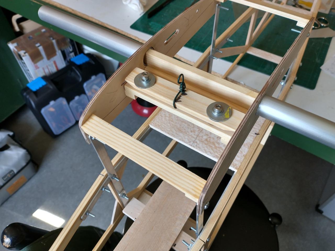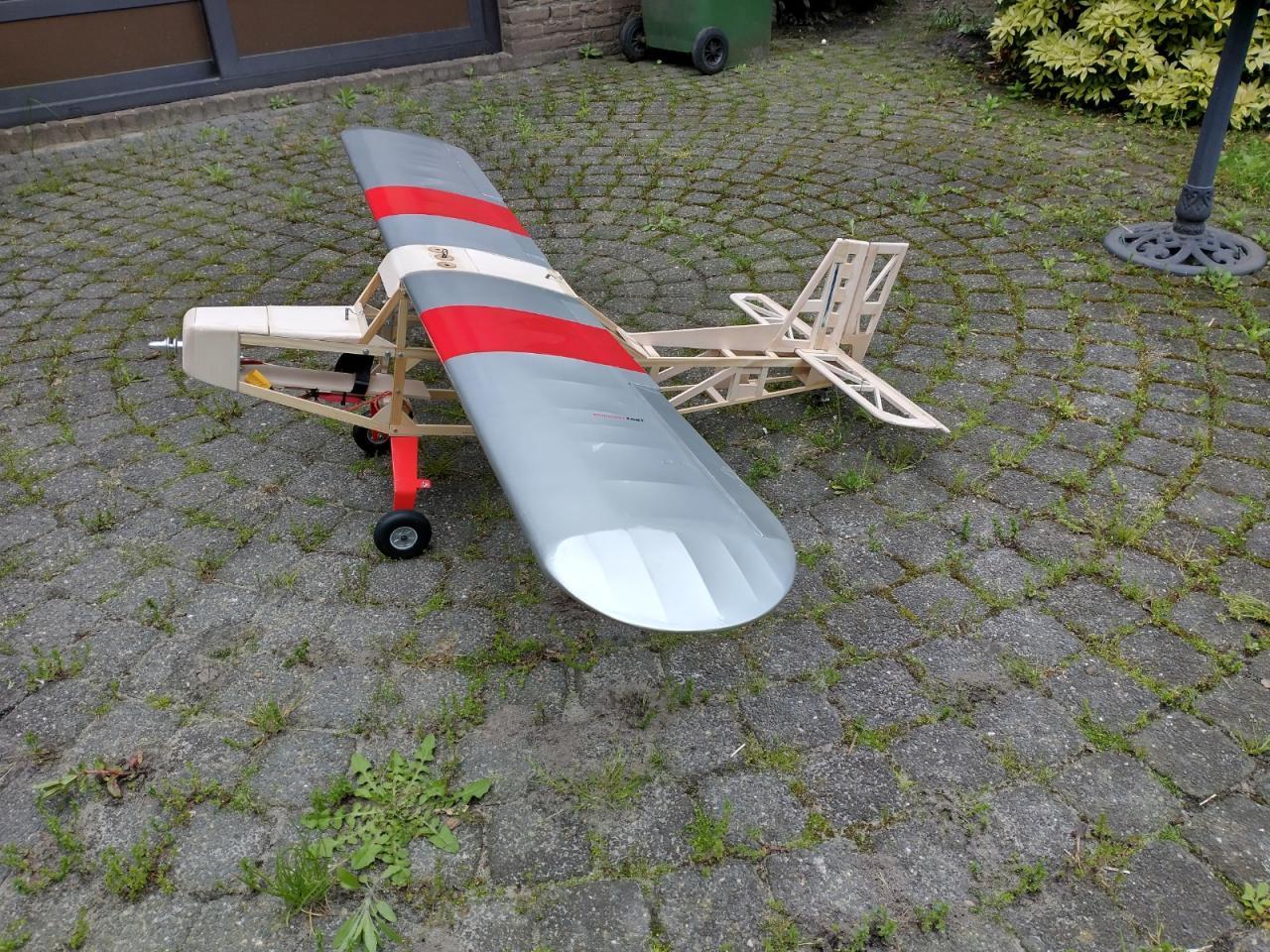 De carbonbuis in de vleugels was ook verloren gegaan en daarvoor heb ik twee resten van een aluminium buis gebruikt die ik nog had liggen.