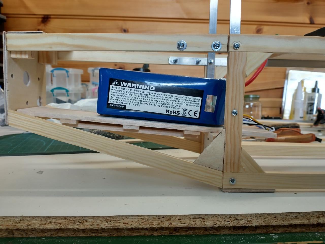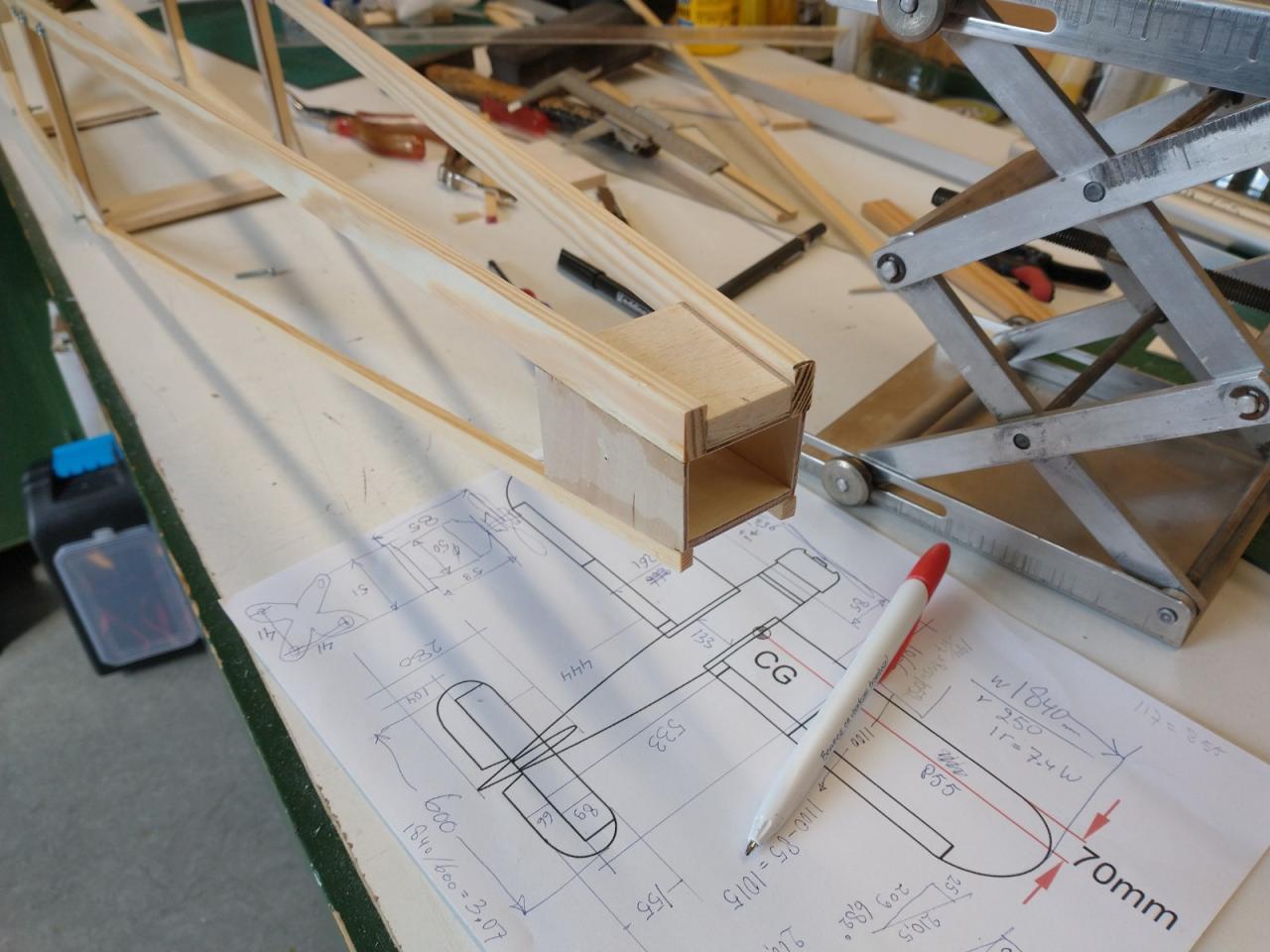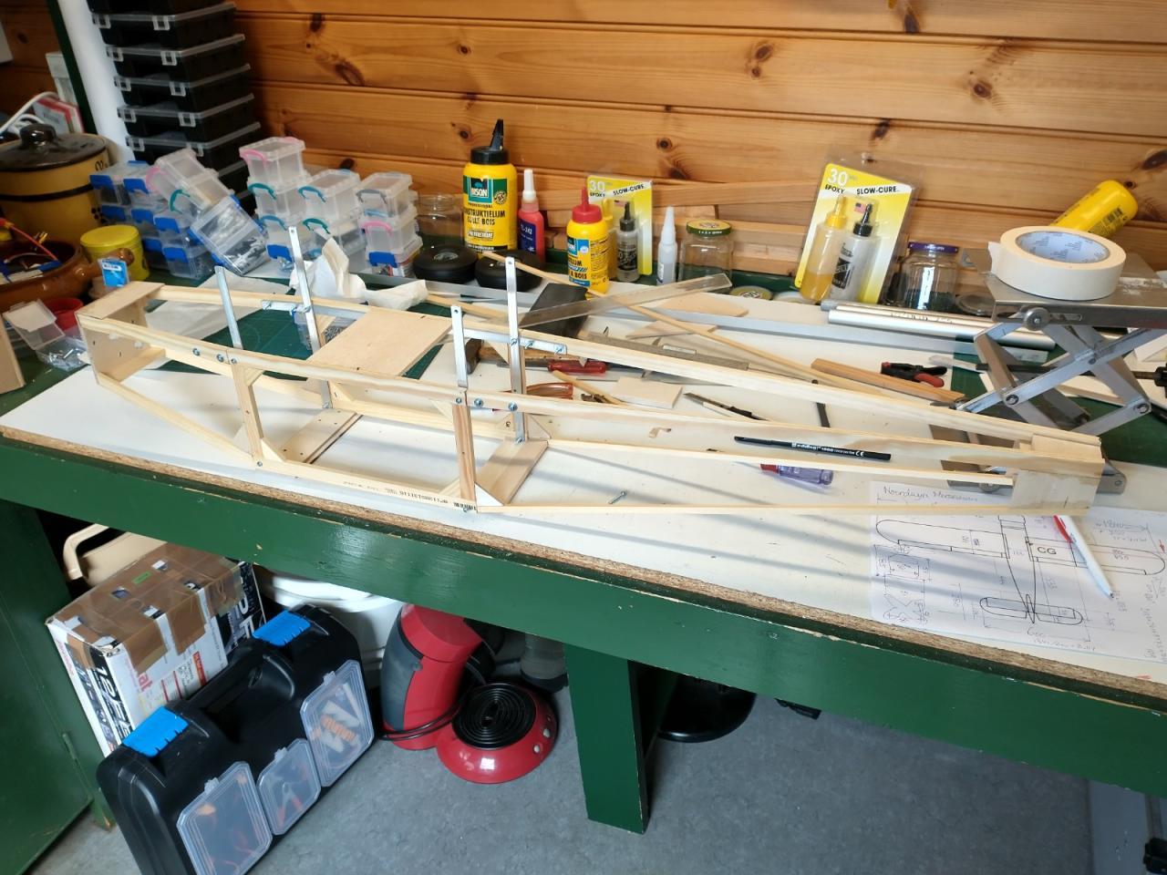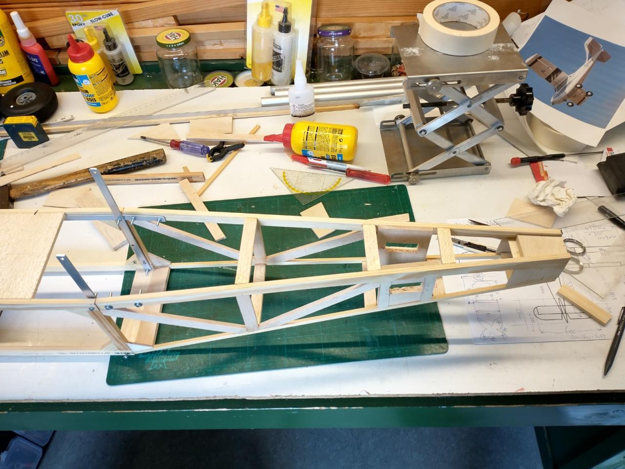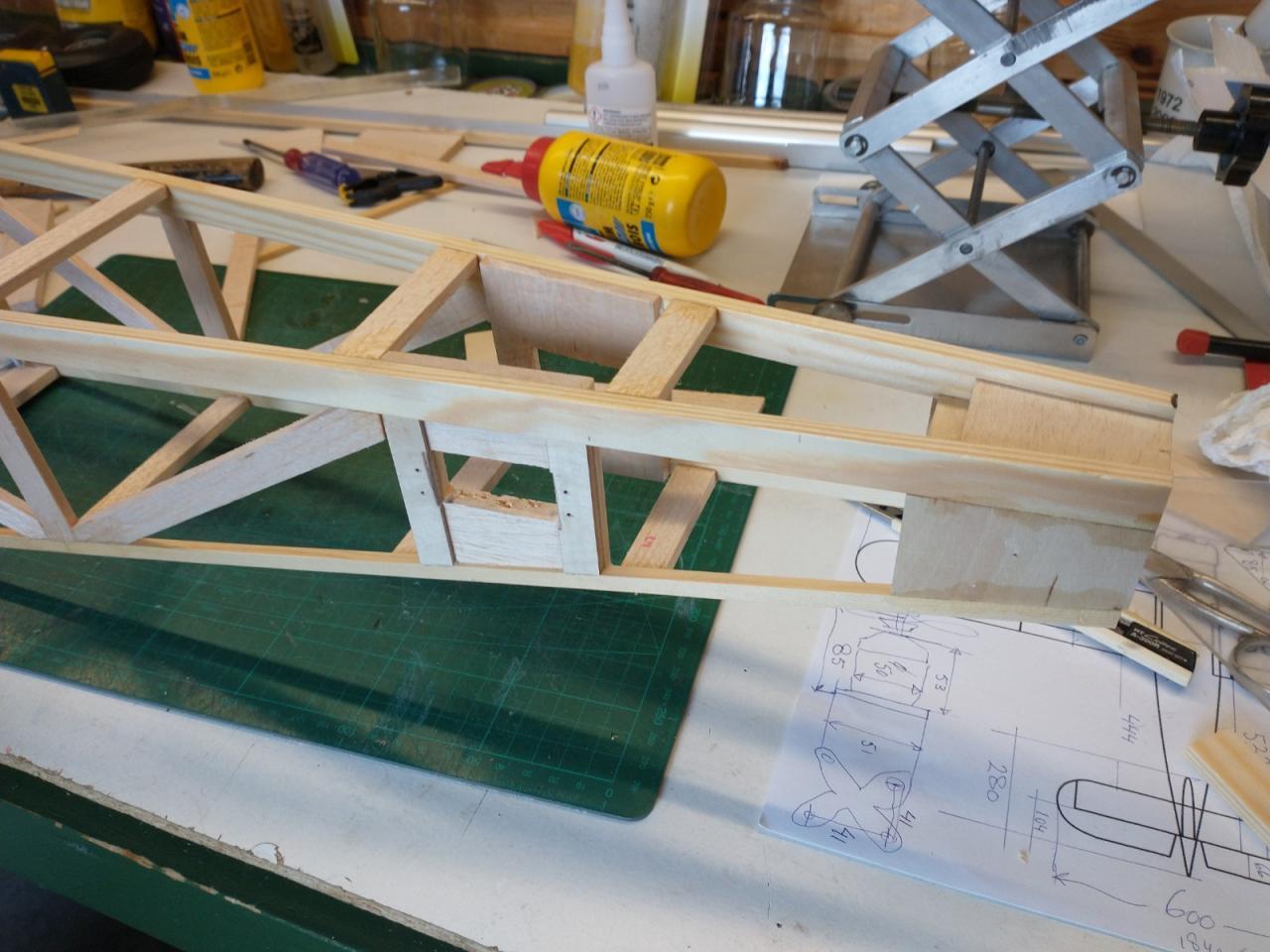De carbonbuis in de vleugels was ook verloren gegaan en daarvoor heb ik twee resten van een aluminium buis gebruikt die ik nog had liggen.