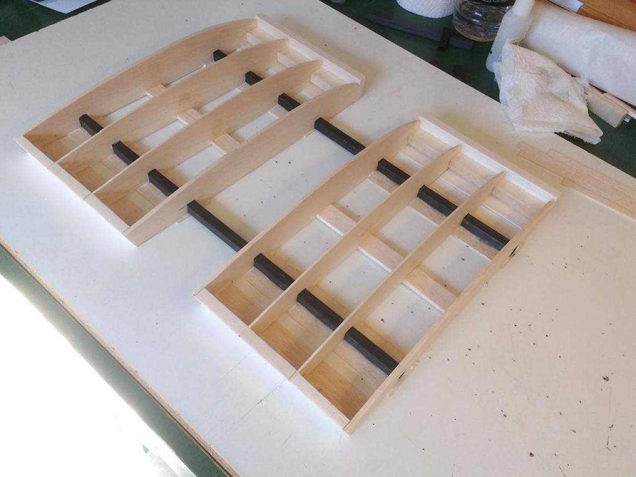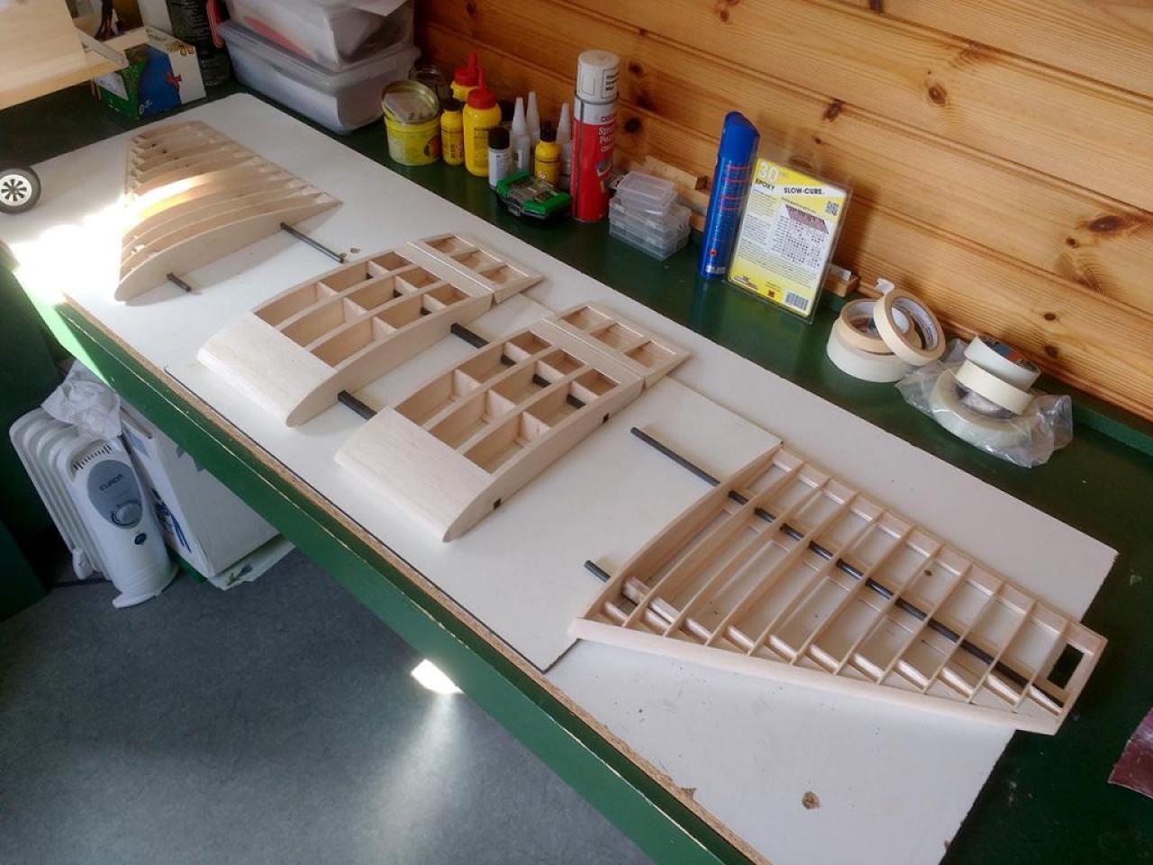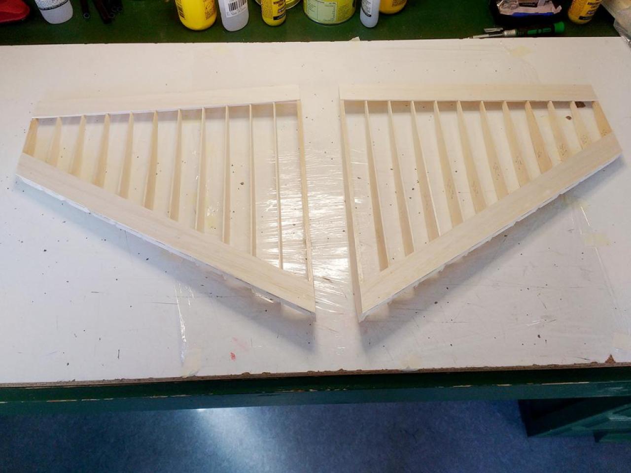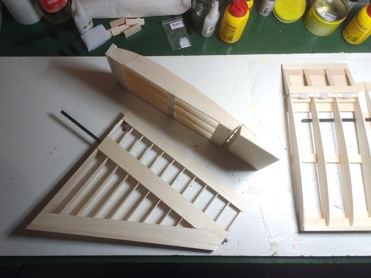 Op 29-1-2020 had ik een verdere aanpak gereed. Nu met hogere wielen en de staart opnieuw gemonteerd. Het CG via cgCalc ingeschat en ingeregeld op 20 cm achter LE bij romp. Zie foto: .