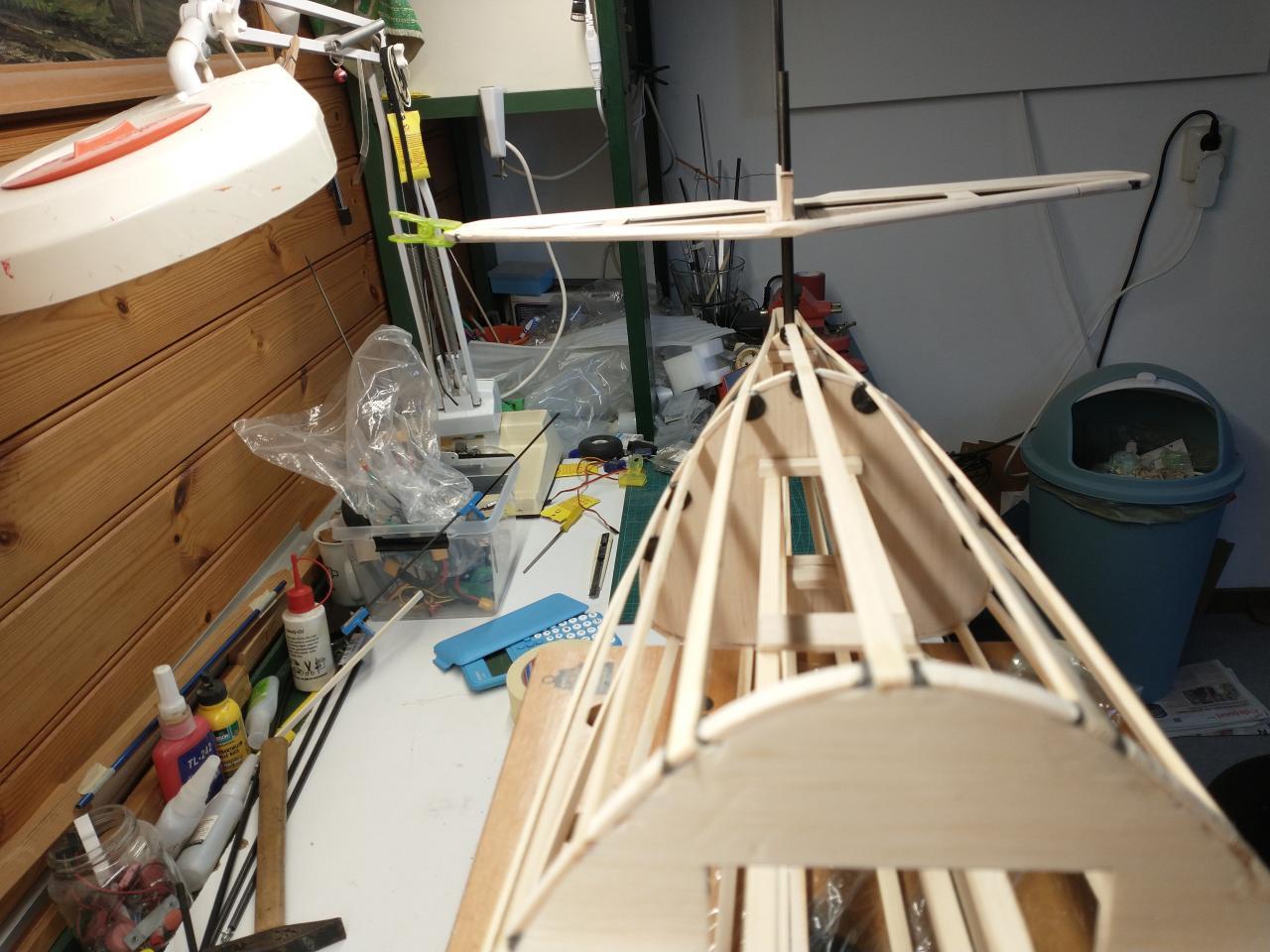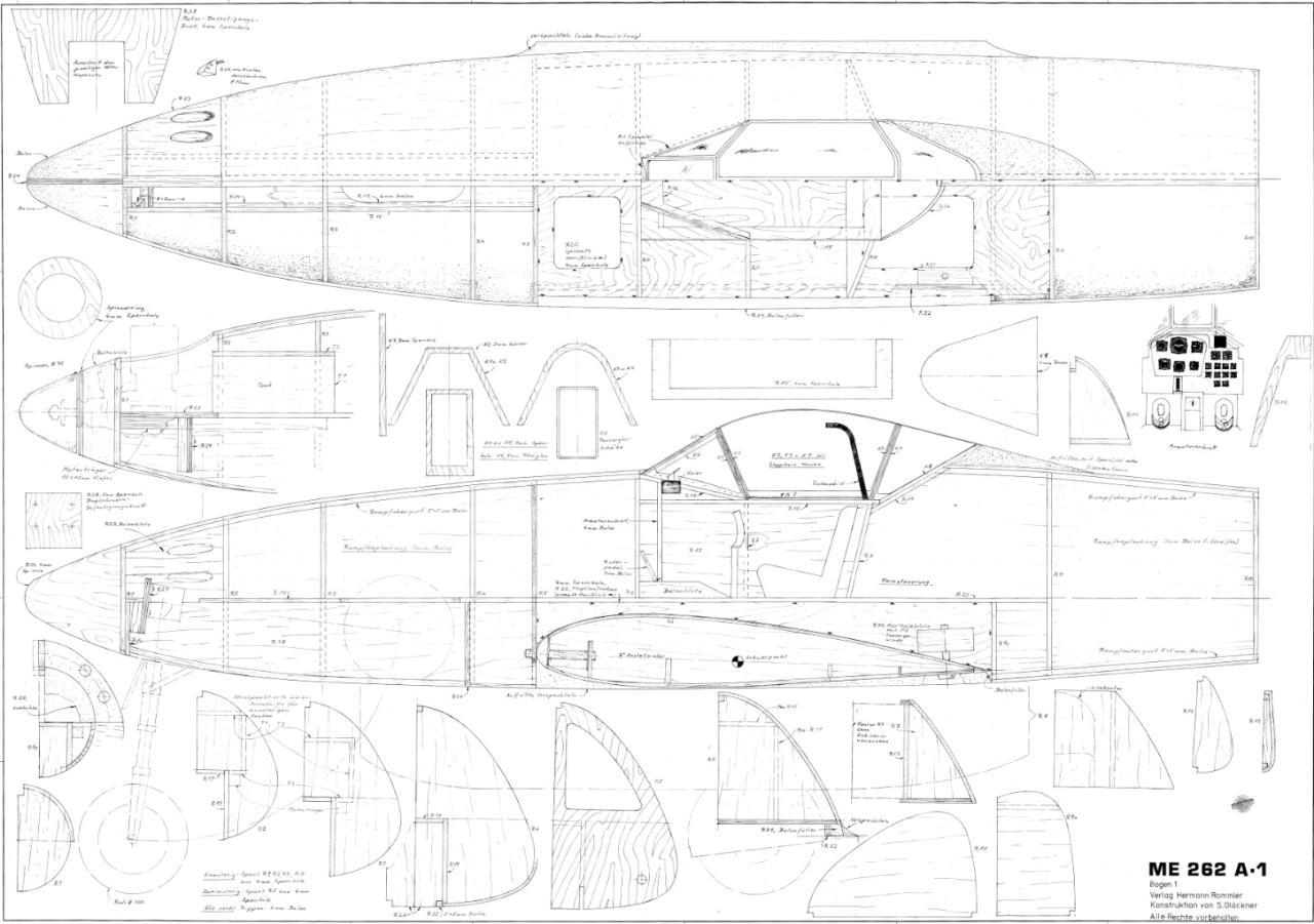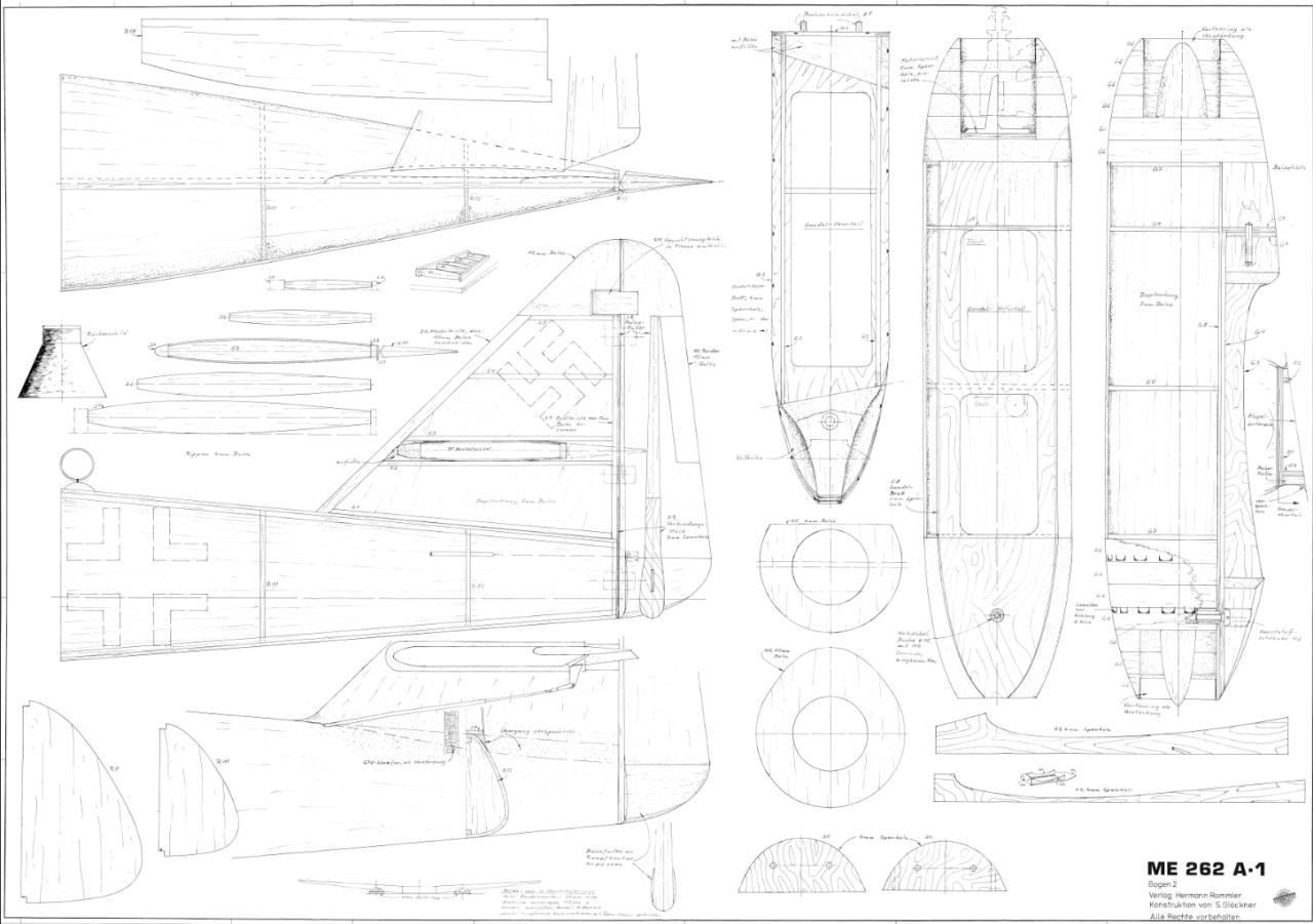 Messerschmitt ME 262 Toen ik een foto zag van deze ME-262 frappeerde de vorm daarvan mij. Een soort banaan, te maken met latjes om spanten, moest ik denken.