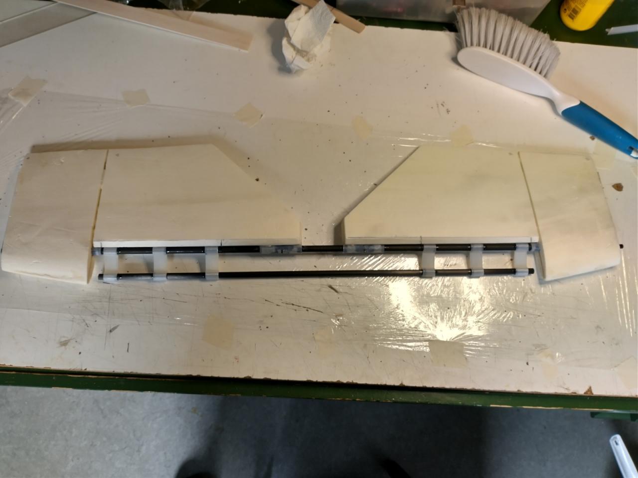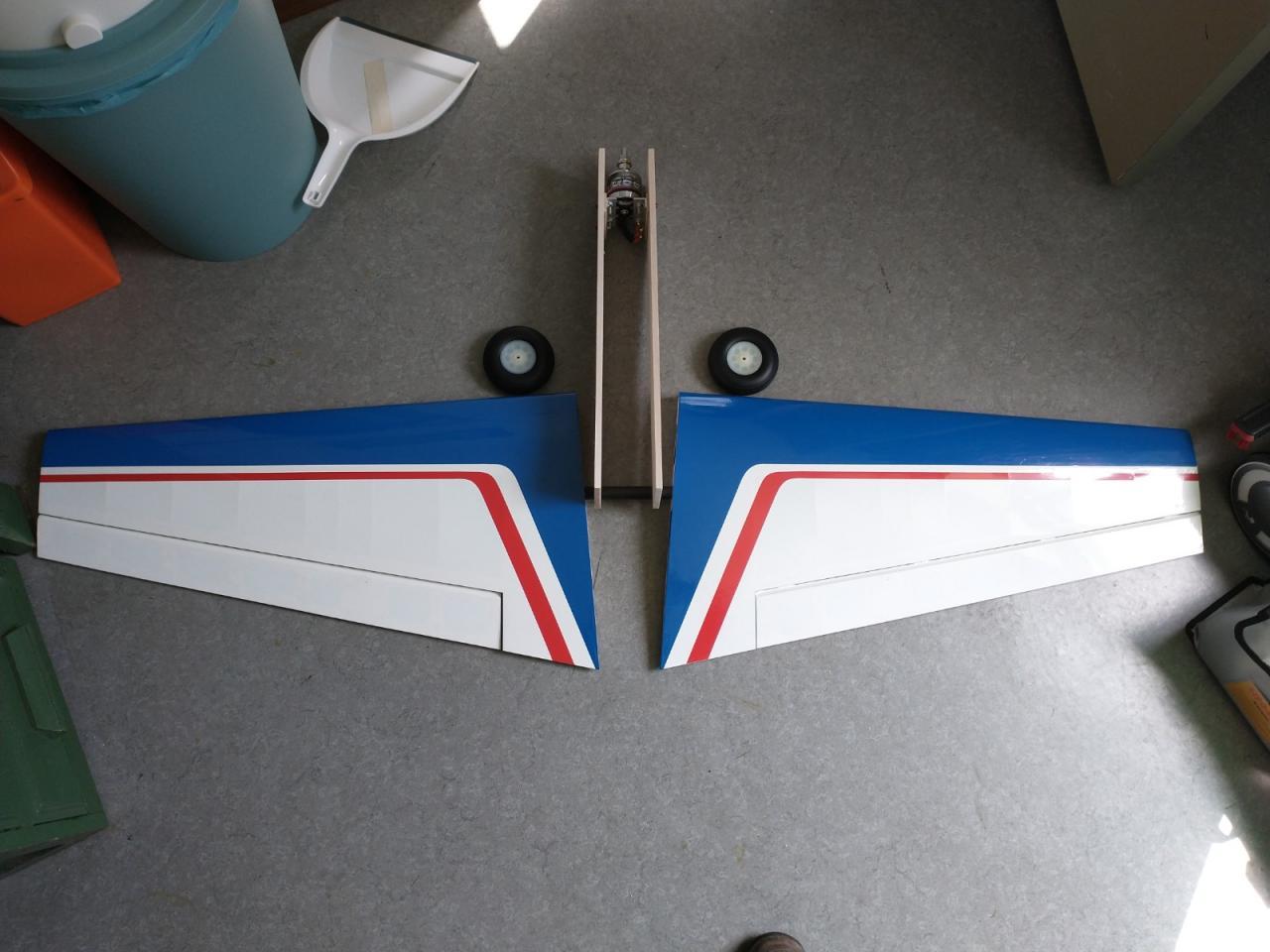 Omdat ik een romp had gemaakt voor Marc Marien kreeg ik van Marc twee ongebruikte nieuwe hoofdvleugels van een Extra 260.