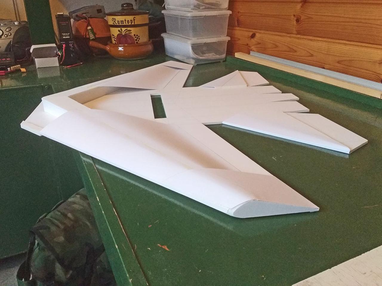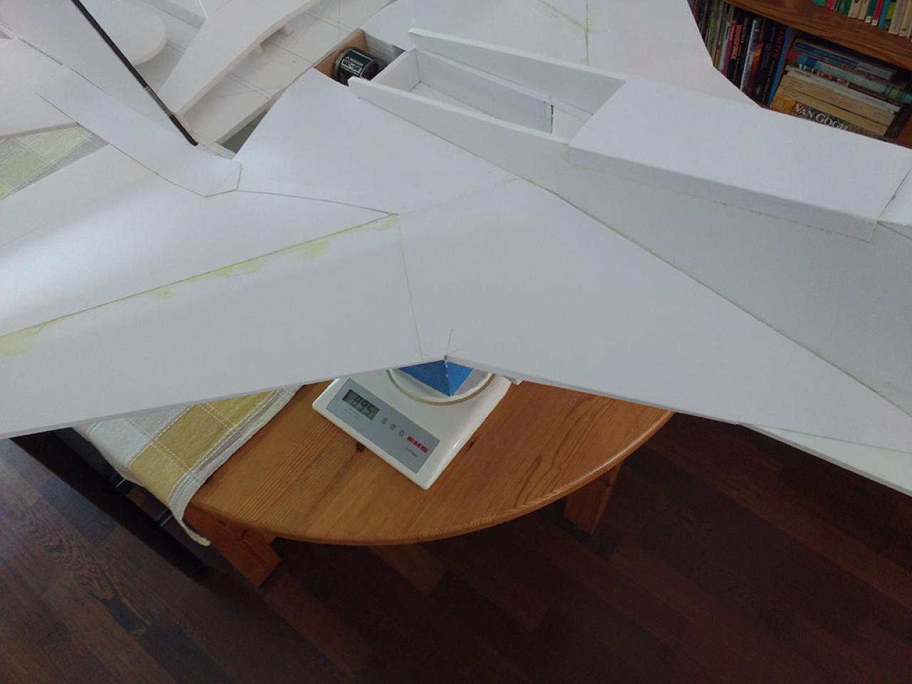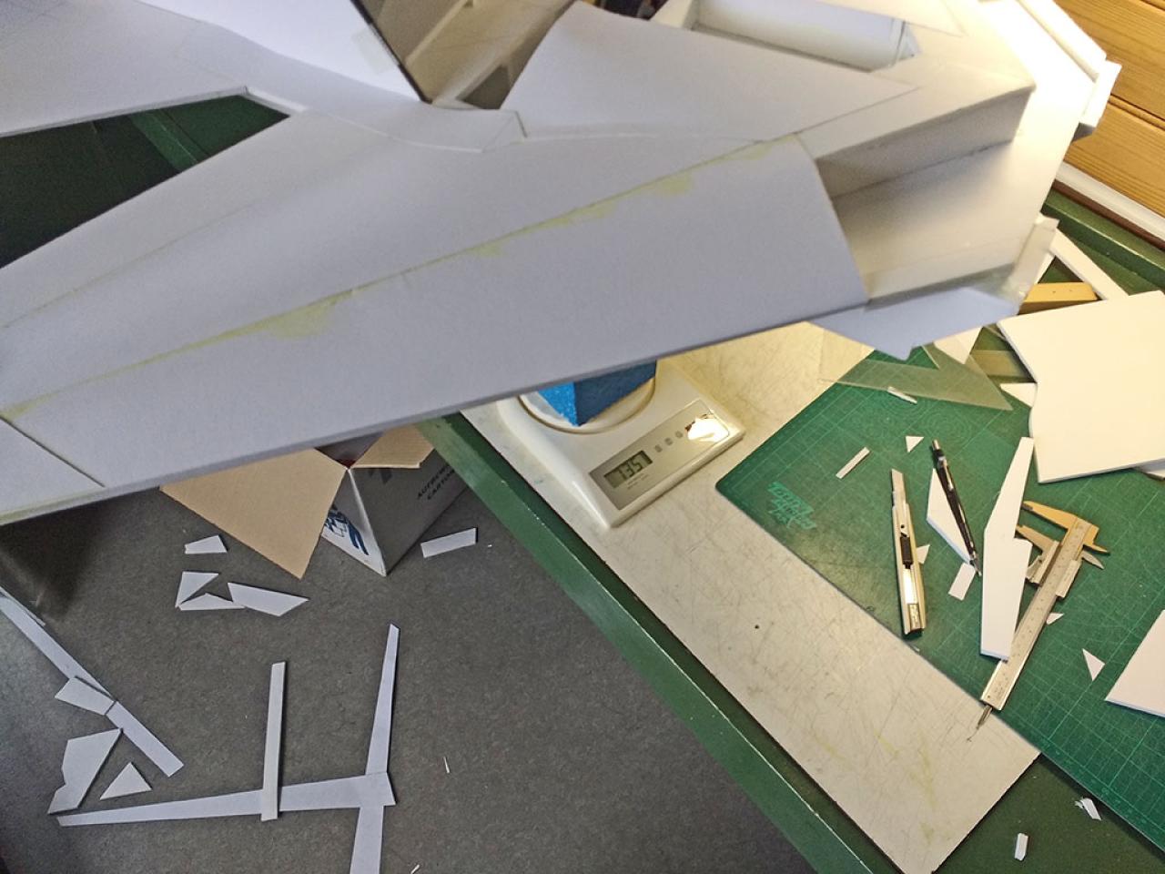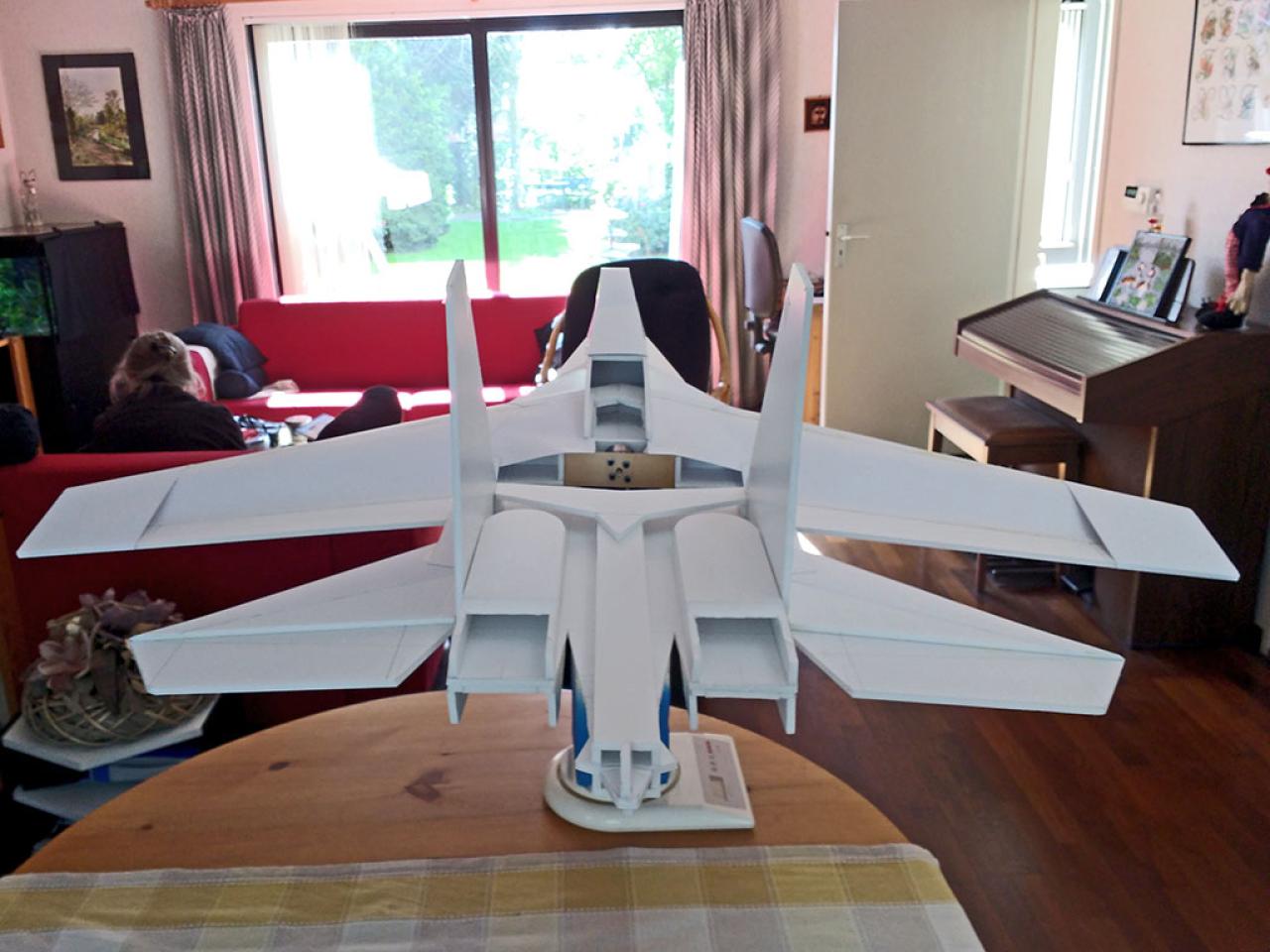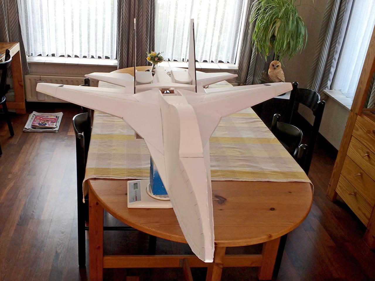 Doelstelling hier was te proberen een zo licht mogelijk model te maken met relatief veel lift waardoor opgooien goed mogelijk zou worden.