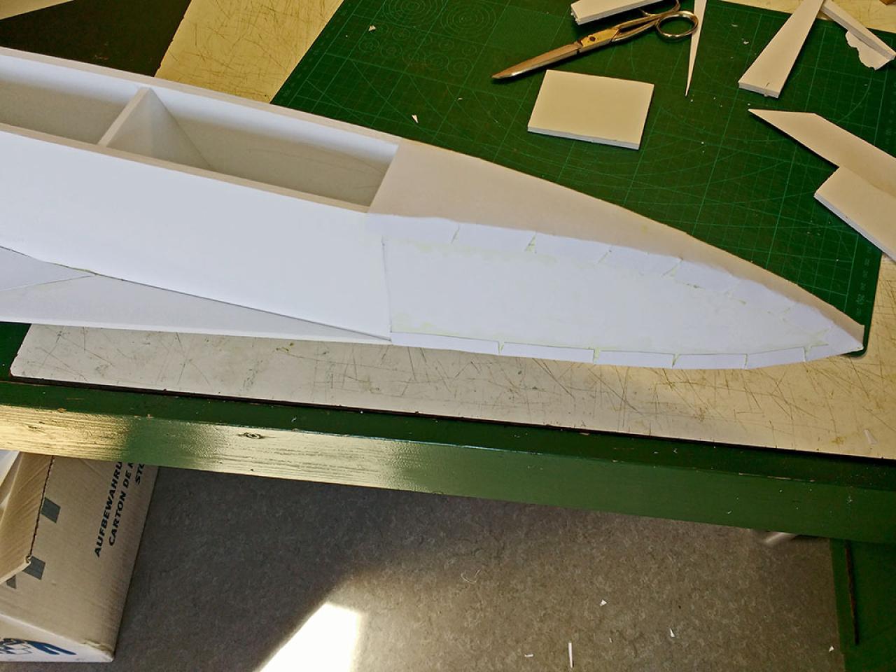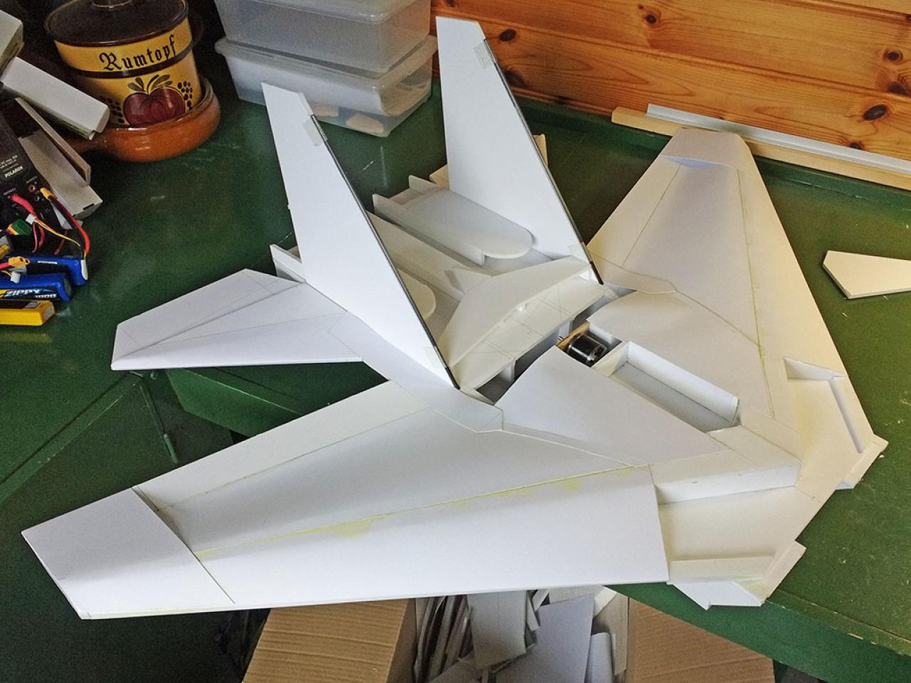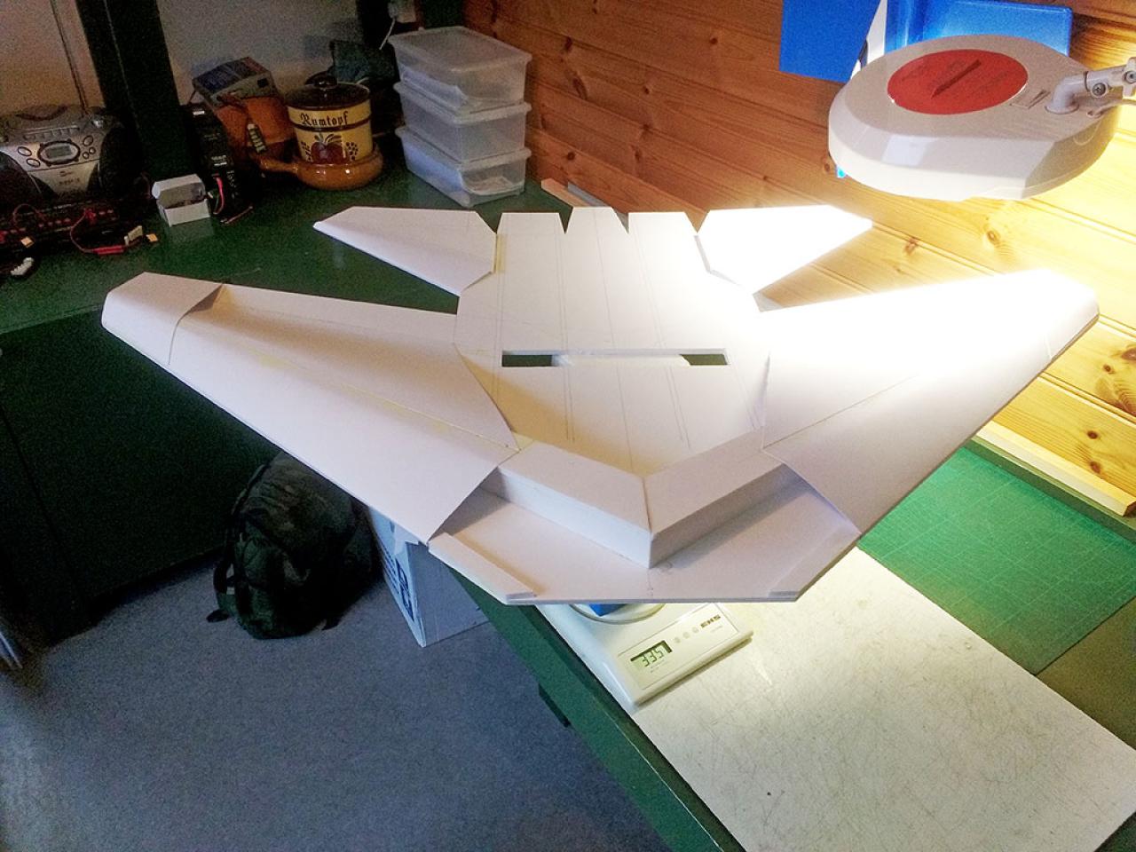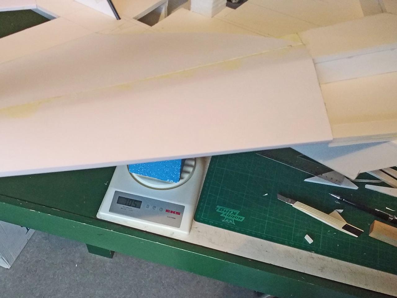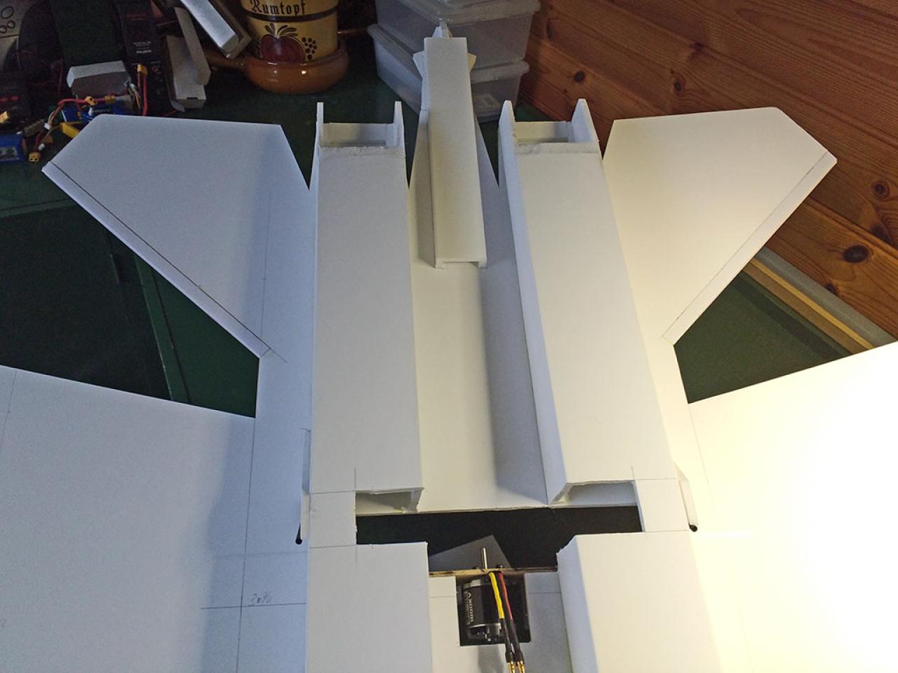 Doelstelling hier was te proberen een zo licht mogelijk model te maken met relatief veel lift waardoor opgooien goed mogelijk zou worden.
