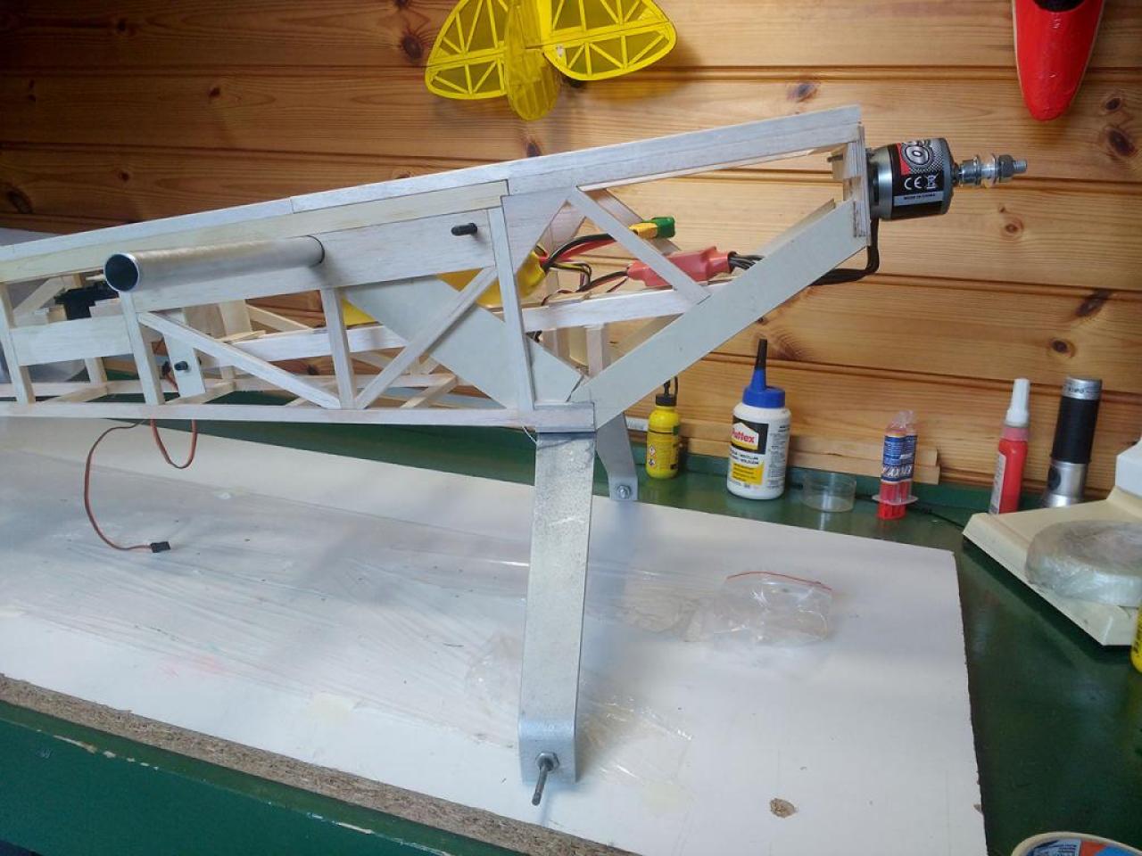 De constructie met als basis een driehoek tussen vleugelbuis, wielsteun en motorsteun voldoet eigenlijk best wel goed.
