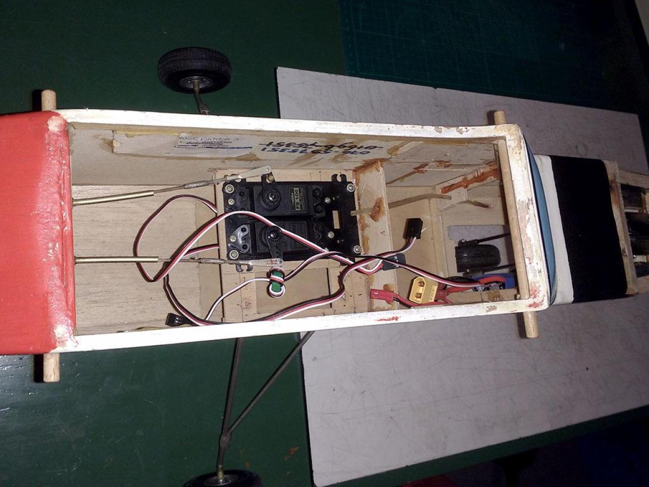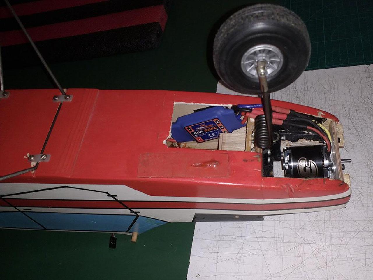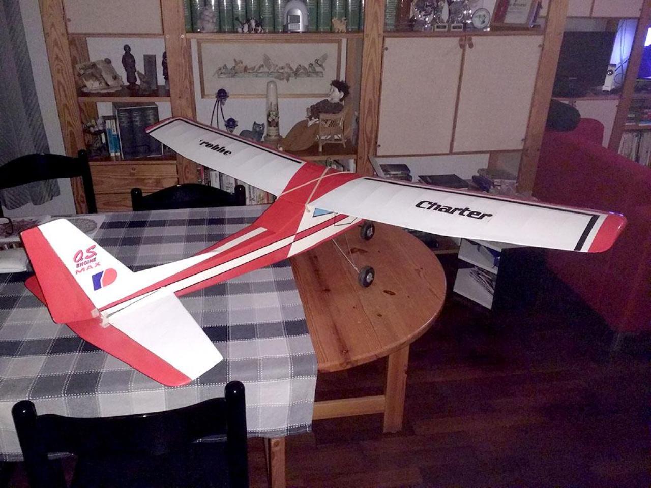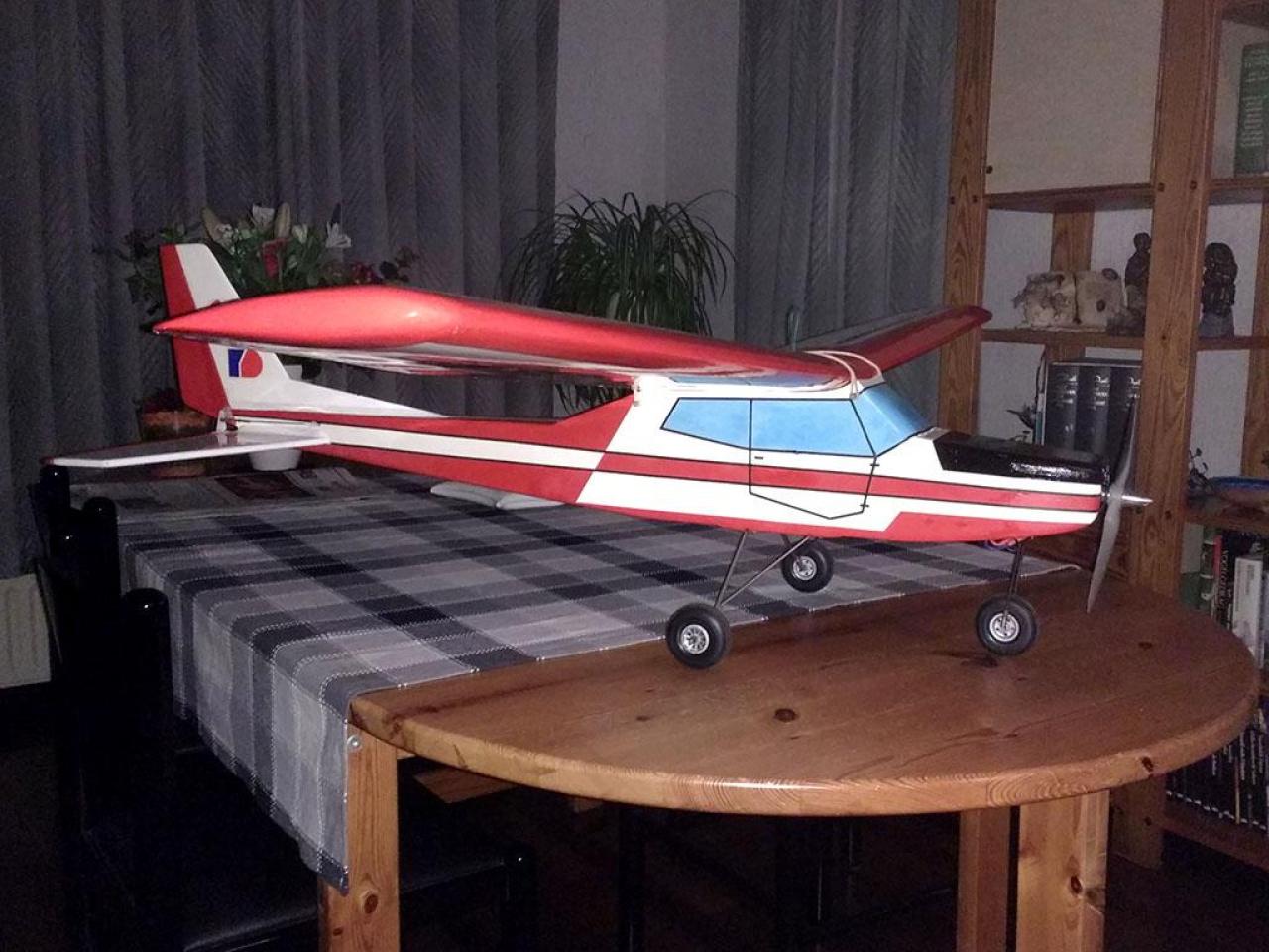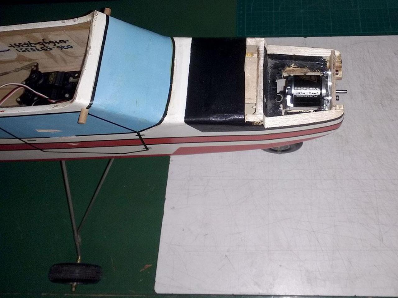 Gebouwd meer dan 30 jaar geleden, na een aantal vluchten met een 6 cc tweetakt en na meer dan 30 jaar op de schap bewaard te hebben, heb ik dit toestel weer eens opgepakt om er een elektrische aandrijving in te bouwen.