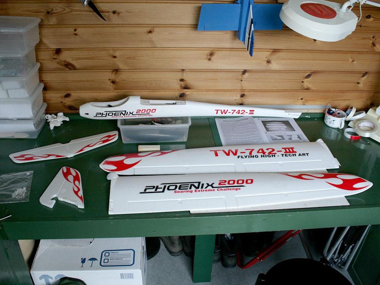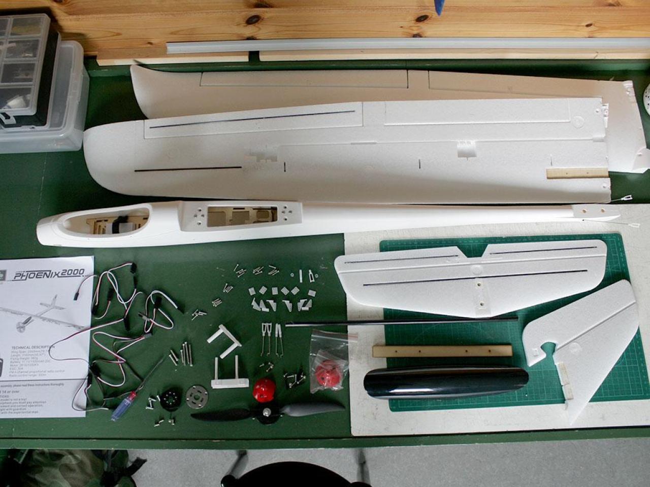 Naast de bouwdoos moest nog worden aangeschaft: motor ESC servo's De handleiding is slecht. Je moet goed opletten eer je begint. De passing etc. is allemaal goed in orde. Ik heb de glider meteen uitgerust met flaps.