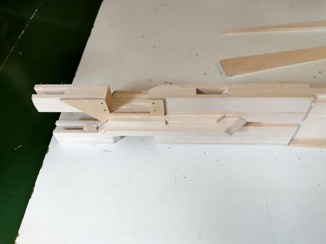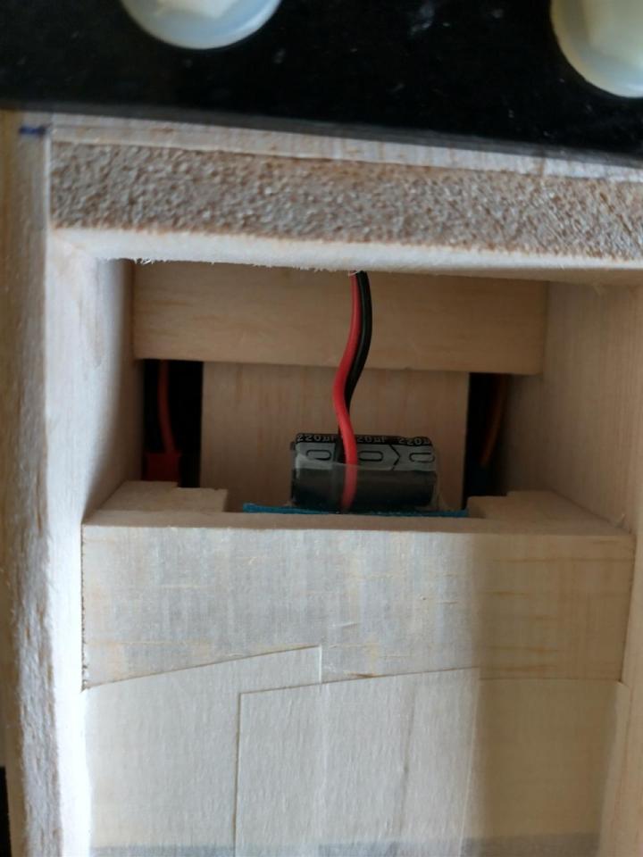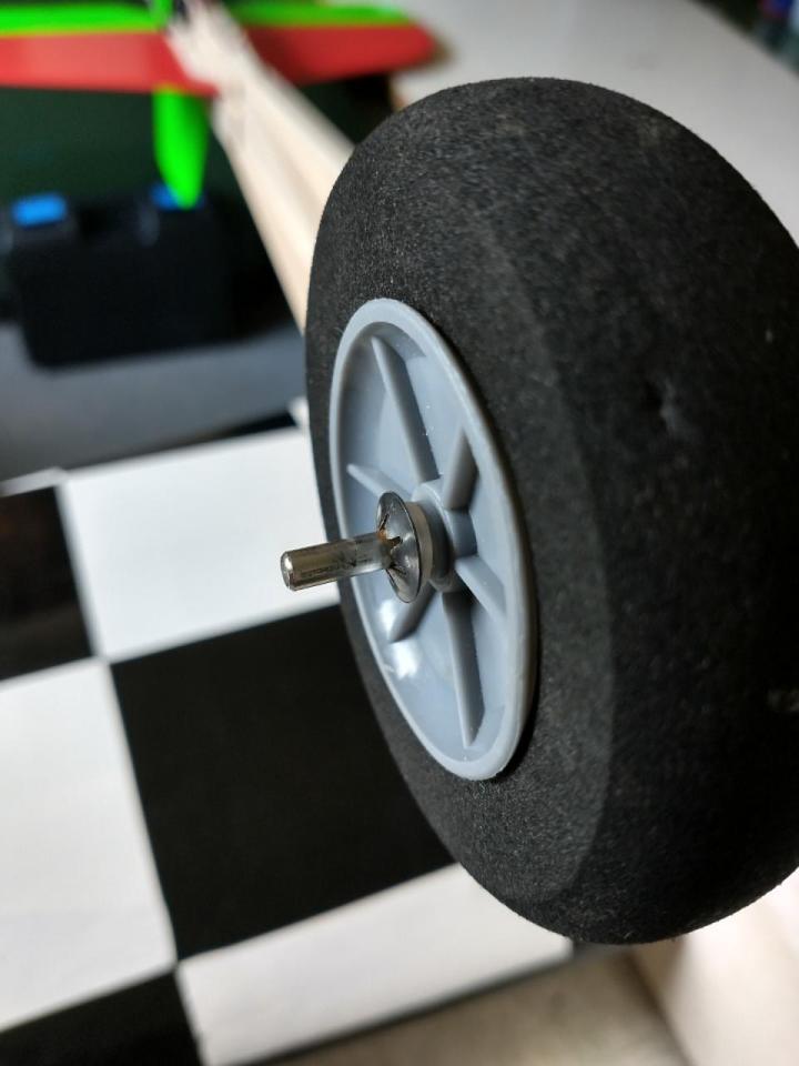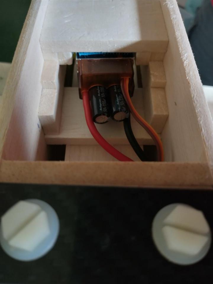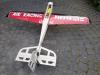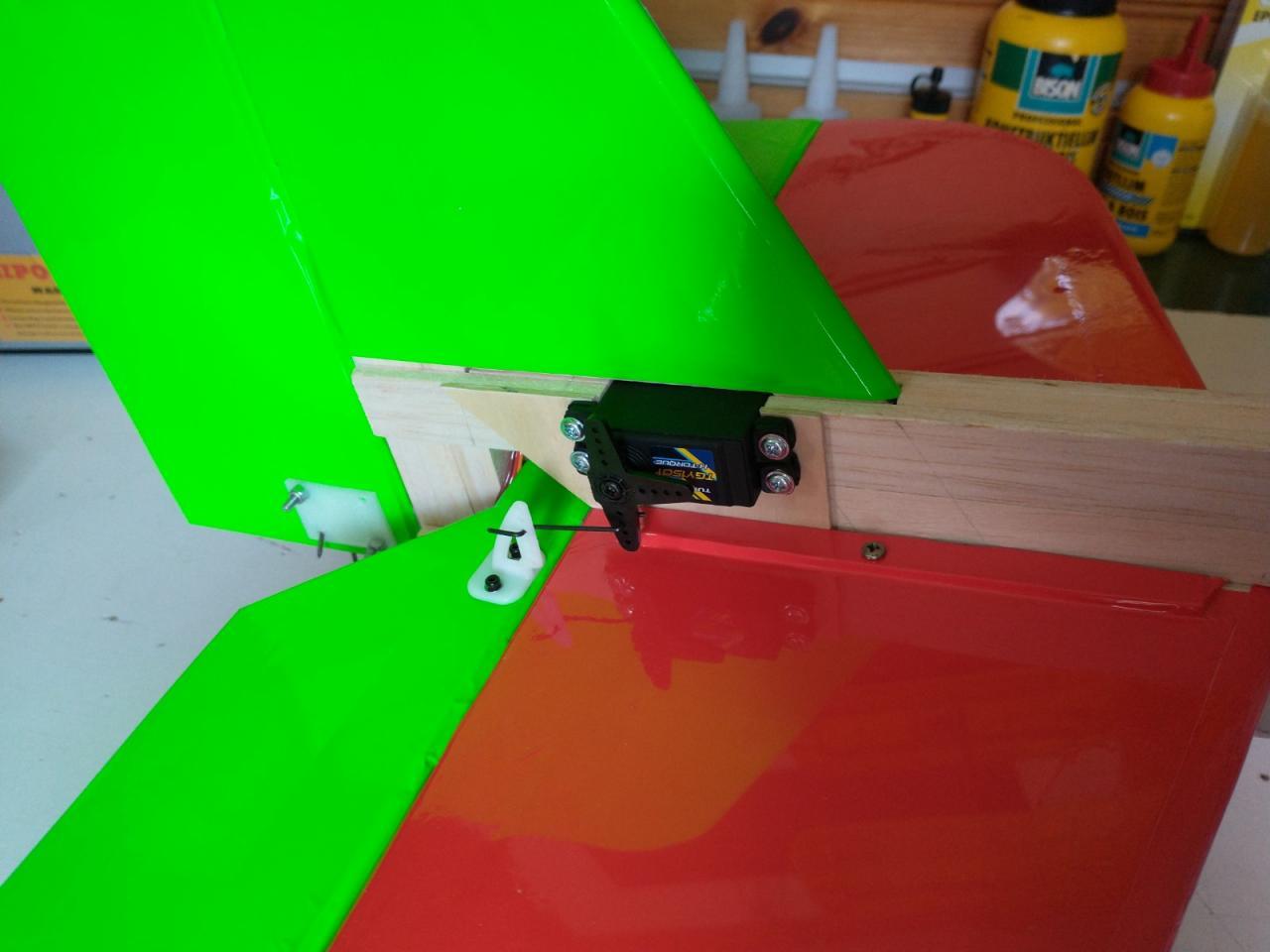 Ook aangepast is de montage van het landingsgestel. Daar toch een stukje 3 mm triplex onder de romp gelijmd en het carbon onderstel weer met 4 6mm nylon bouten vast gezet.