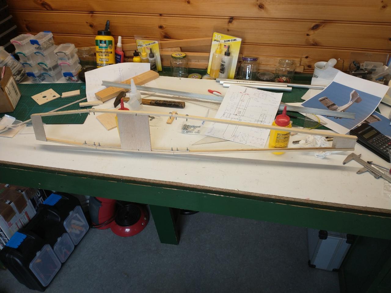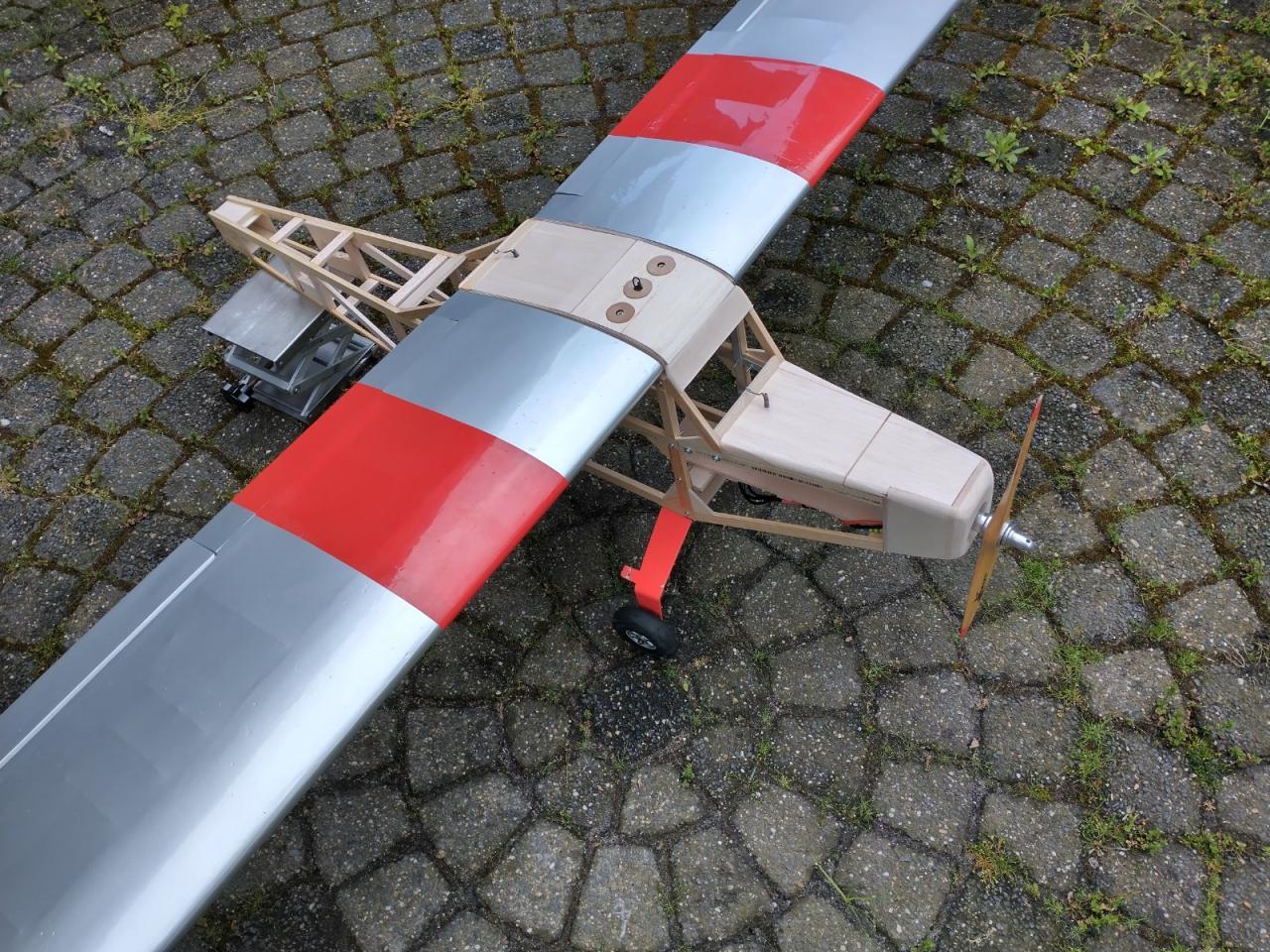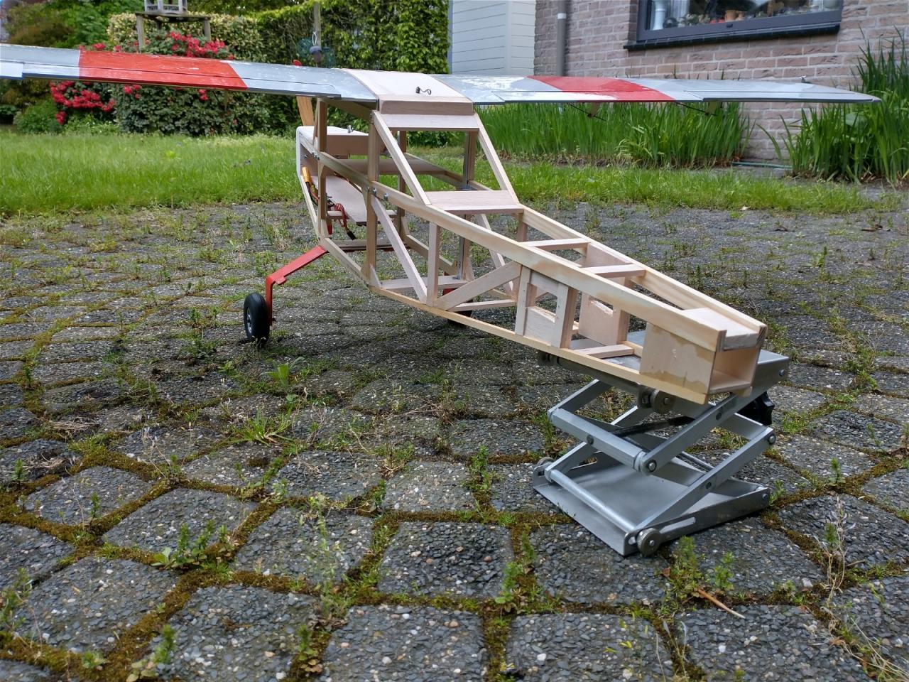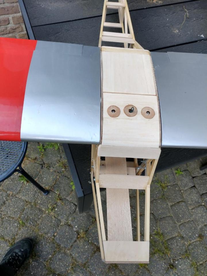 De carbonbuis in de vleugels was ook verloren gegaan en daarvoor heb ik twee resten van een aluminium buis gebruikt die ik nog had liggen.