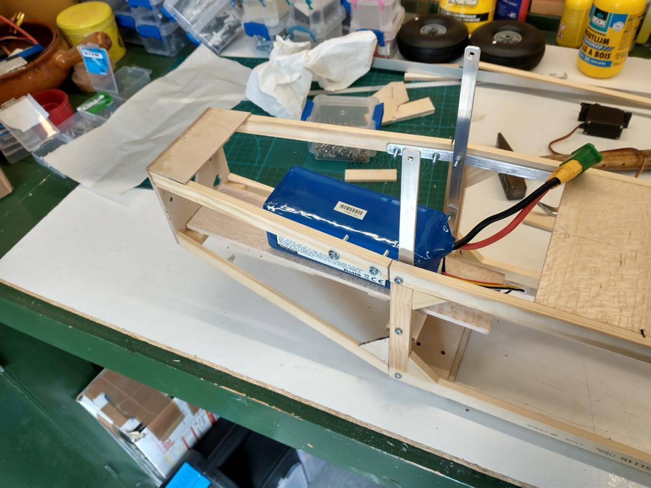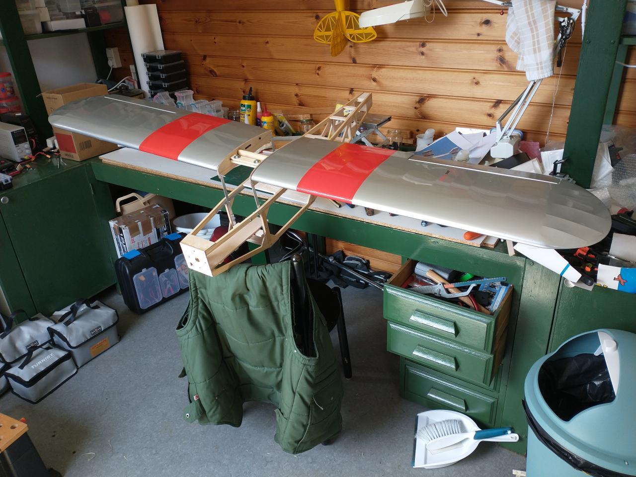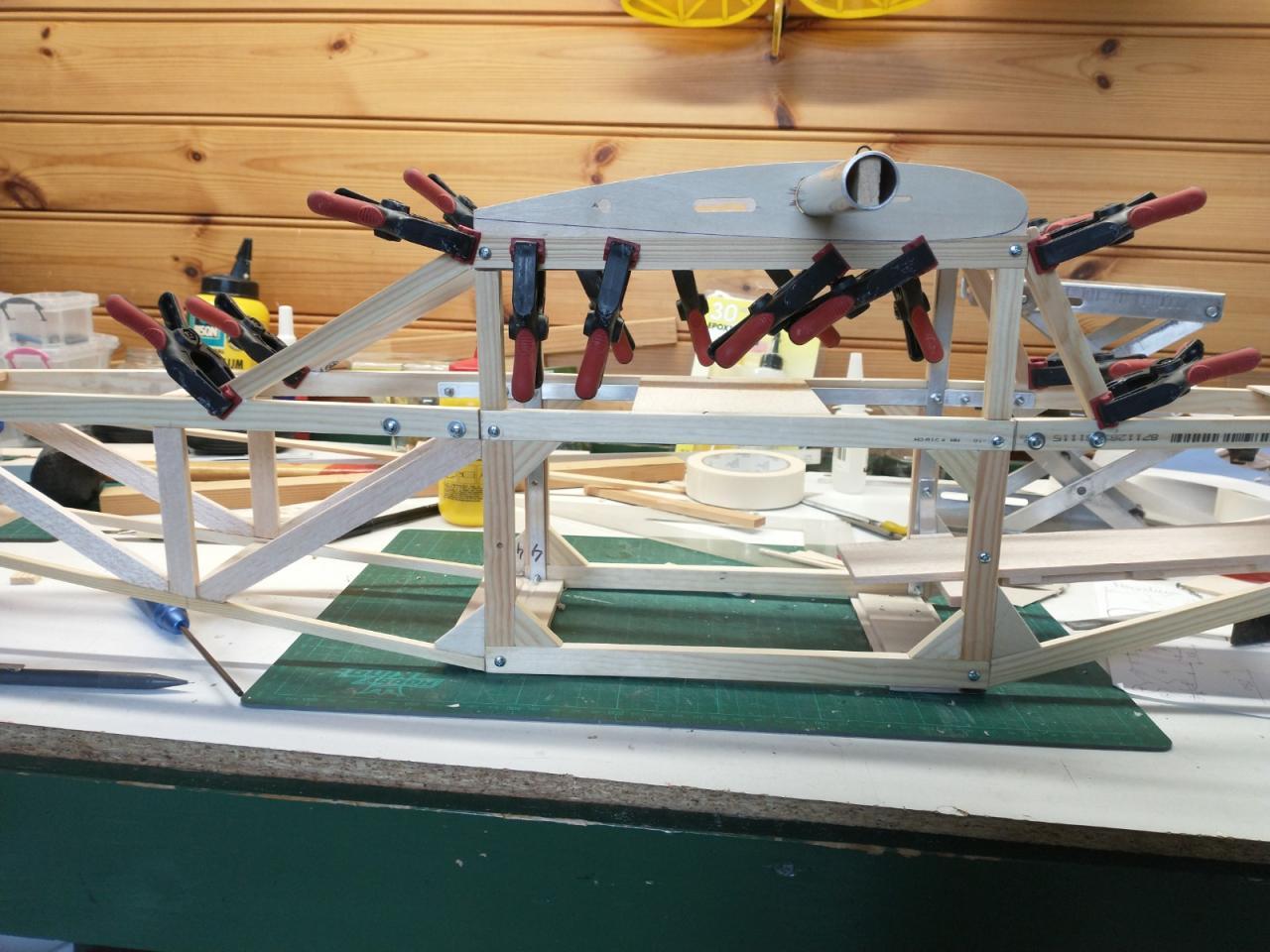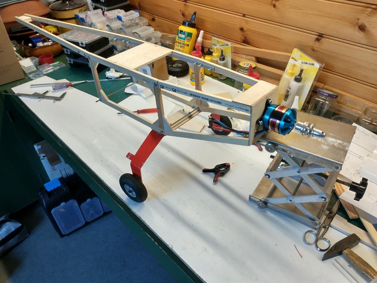 De carbonbuis in de vleugels was ook verloren gegaan en daarvoor heb ik twee resten van een aluminium buis gebruikt die ik nog had liggen.