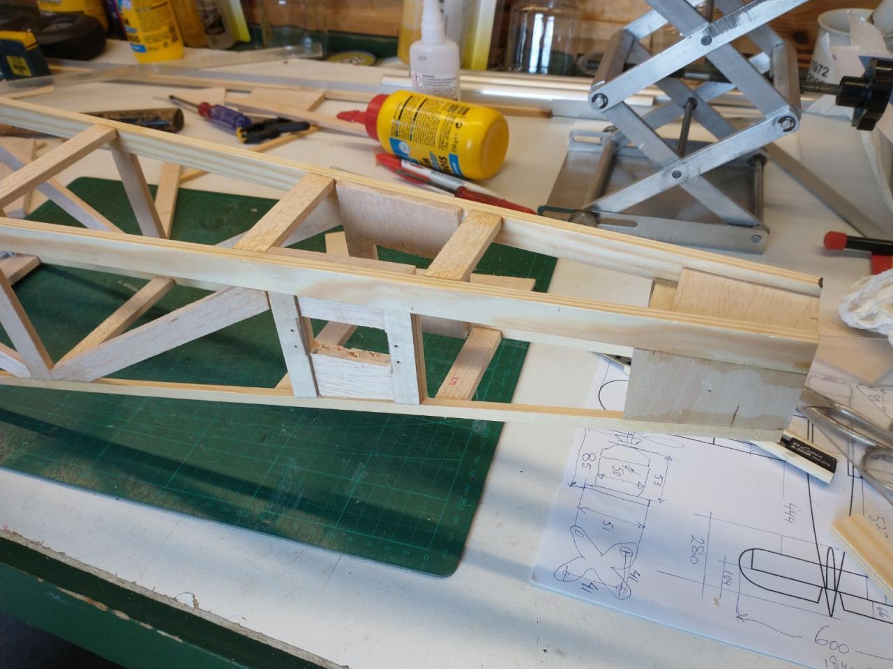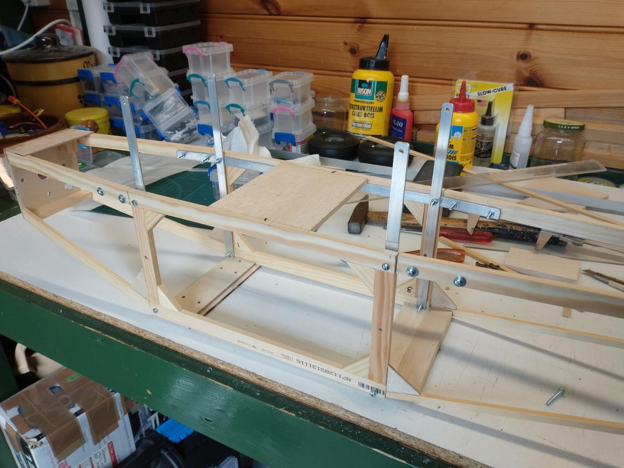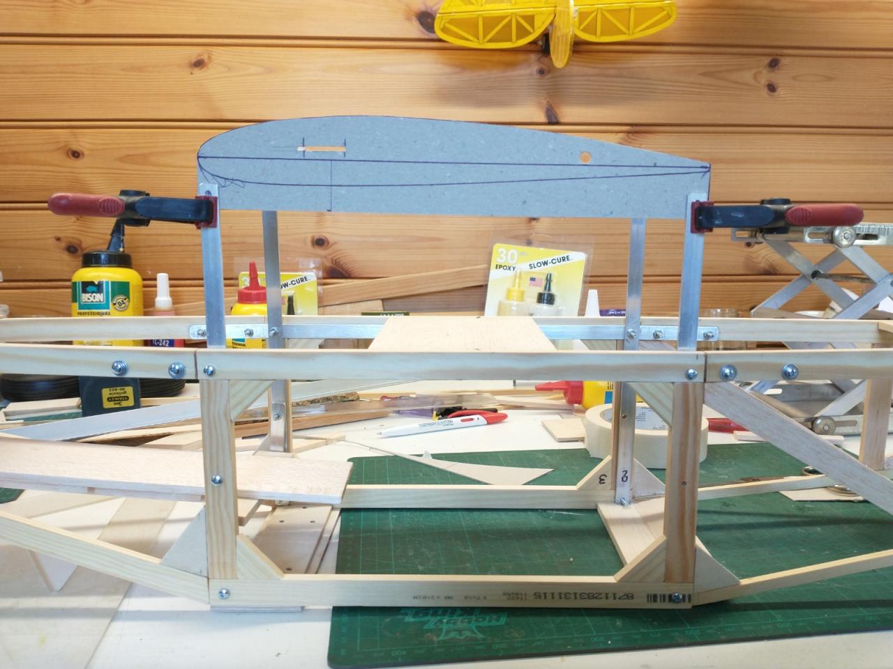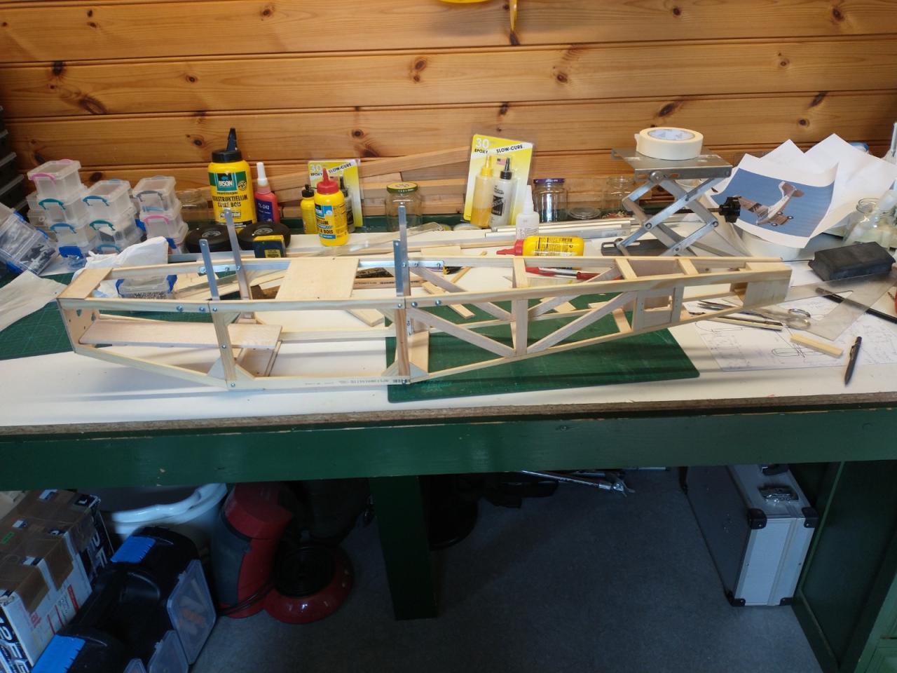 De carbonbuis in de vleugels was ook verloren gegaan en daarvoor heb ik twee resten van een aluminium buis gebruikt die ik nog had liggen.