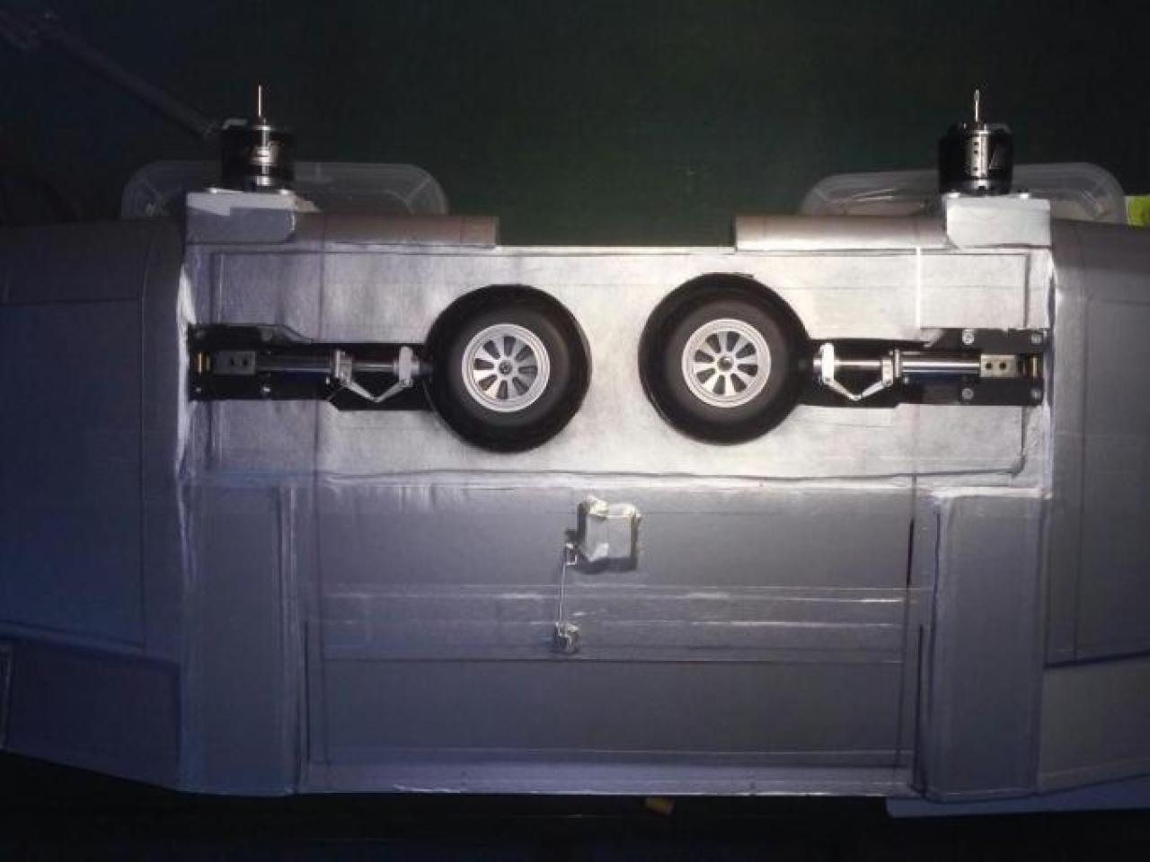 De retracts overleefden de landingen niet en daarom zijn de stuts maar vastgezet.