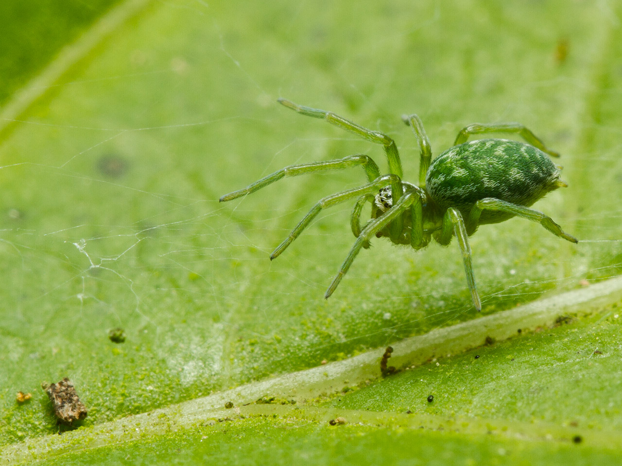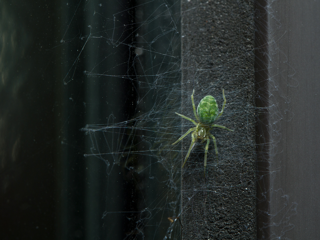 Dit leuke groene spinnetje leeft in onze tuin en laat zich best wel eens zien.